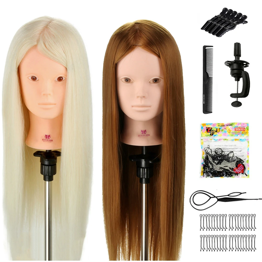 24 ''макияж Обучение парикмахерской голова-манекен для салона прически модель головы 50% настоящие волосы кукла манекен голова + зажим