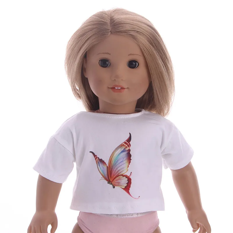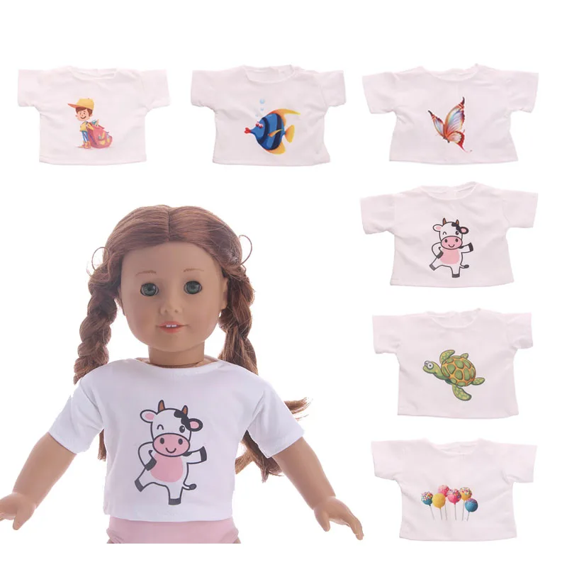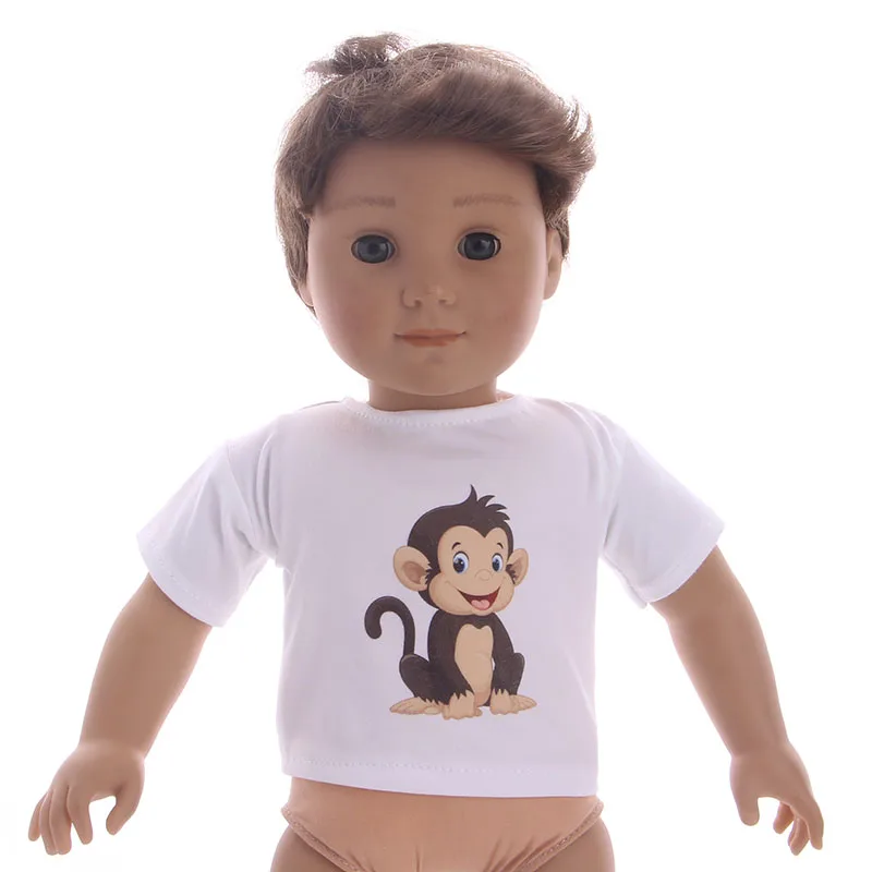 Женская футболка с милым рисунком (конфеты, обезьянки и т. д.) подходит для 18-дюймовых американских кукол 43 см одежда аксессуары, игрушки для девочек поколения