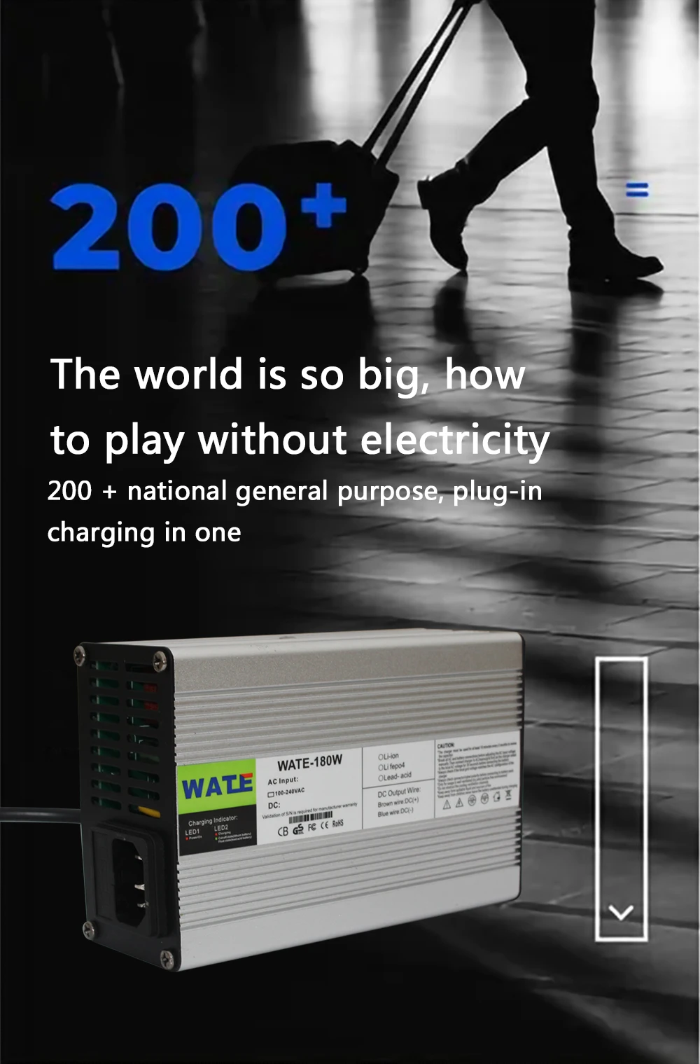 2. Выходная мощность: 180 Вт3. Выходное напряжение постоянного тока: 48 В 2A4. Светодиодный светильник-индикатор с логотипом: красный и зеленый, инструкции по двойному цвету, красная зарядка зеленого цвета или в режиме ожидания5. Эффективность: >85%6.MTBF: 30000 часов7. Основные Экспортные рынки: Азия/Восточная Европа/Средний Восток/Африка/Австралия/Северная Америка/Центральная/Южная Америка/Западная Европа