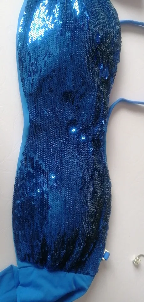 Очень много положительных отзывов и это правда. Очень красивый куп, все пайетки на месте, цвет обалдеть. Теперь хочу в других цветах. Заказывала размер М на ОГ92, ОТ 92. На попе сели хорошо, тут огромный плюс, что на завязках, регулировать легко. А вот в груди тика в тику по чашке, на 2.5 размер.