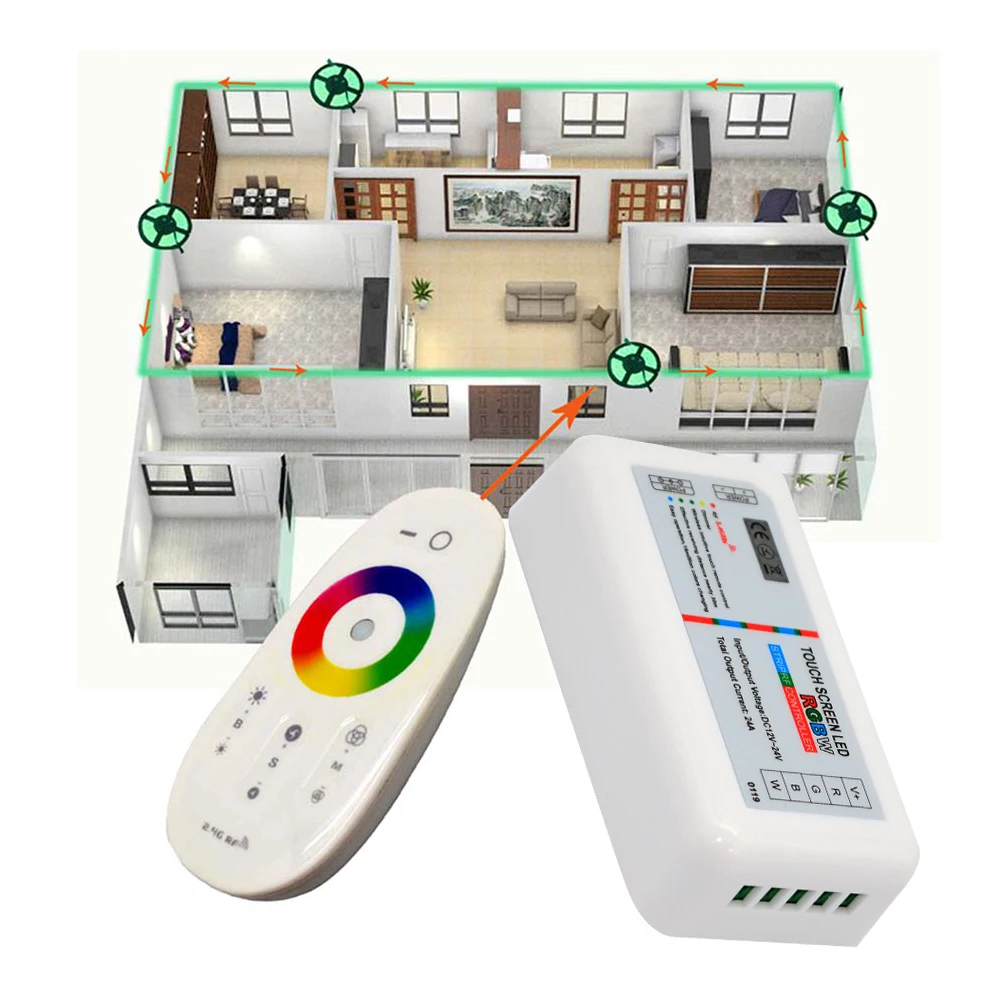 Пульт дистанционного управления для светодиодных лент smd 2,4, 5050, 12-24 В постоянного тока, RGB RGBW, 2835 ГГц, RF, сенсорный экран, 6 А на канал