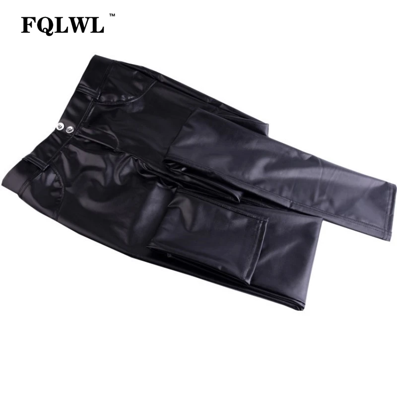 Брюки женские кожаные эластичные черные, с высокой талией, большие размеры