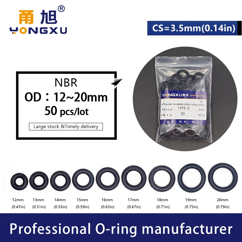 Черное уплотнительное кольцо NBR, 50 шт.лот, CS3.5mm OD121314151617181920*3,5 мм, Уплотнительная резиновая прокладка, масляные кольца для шайбы