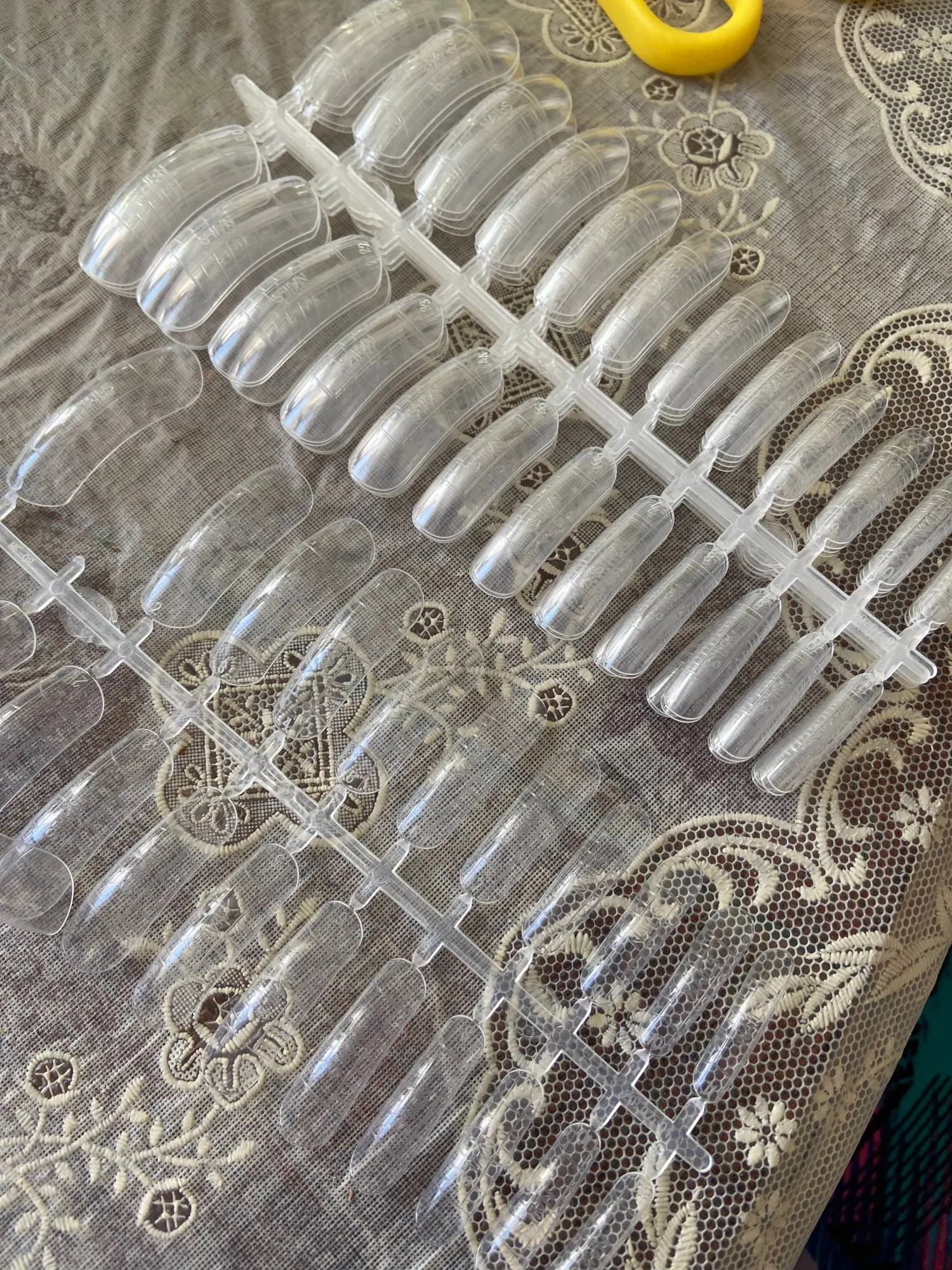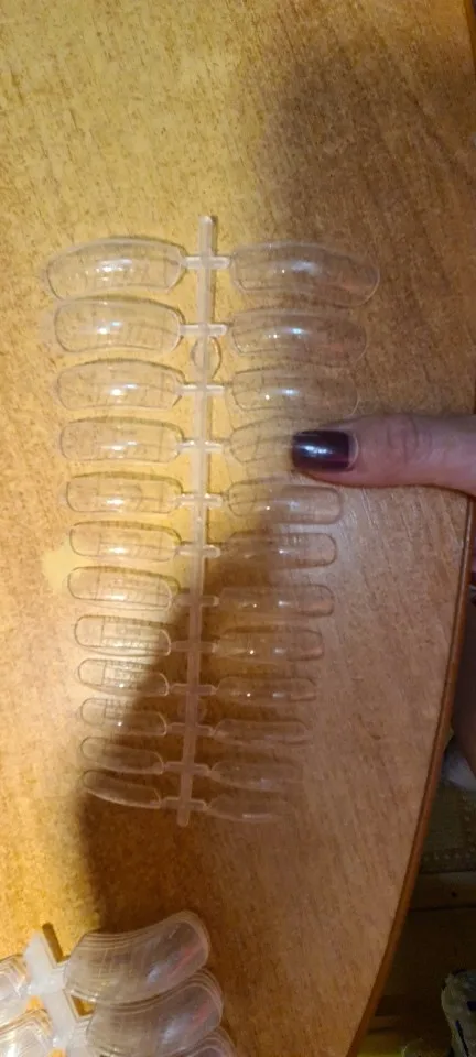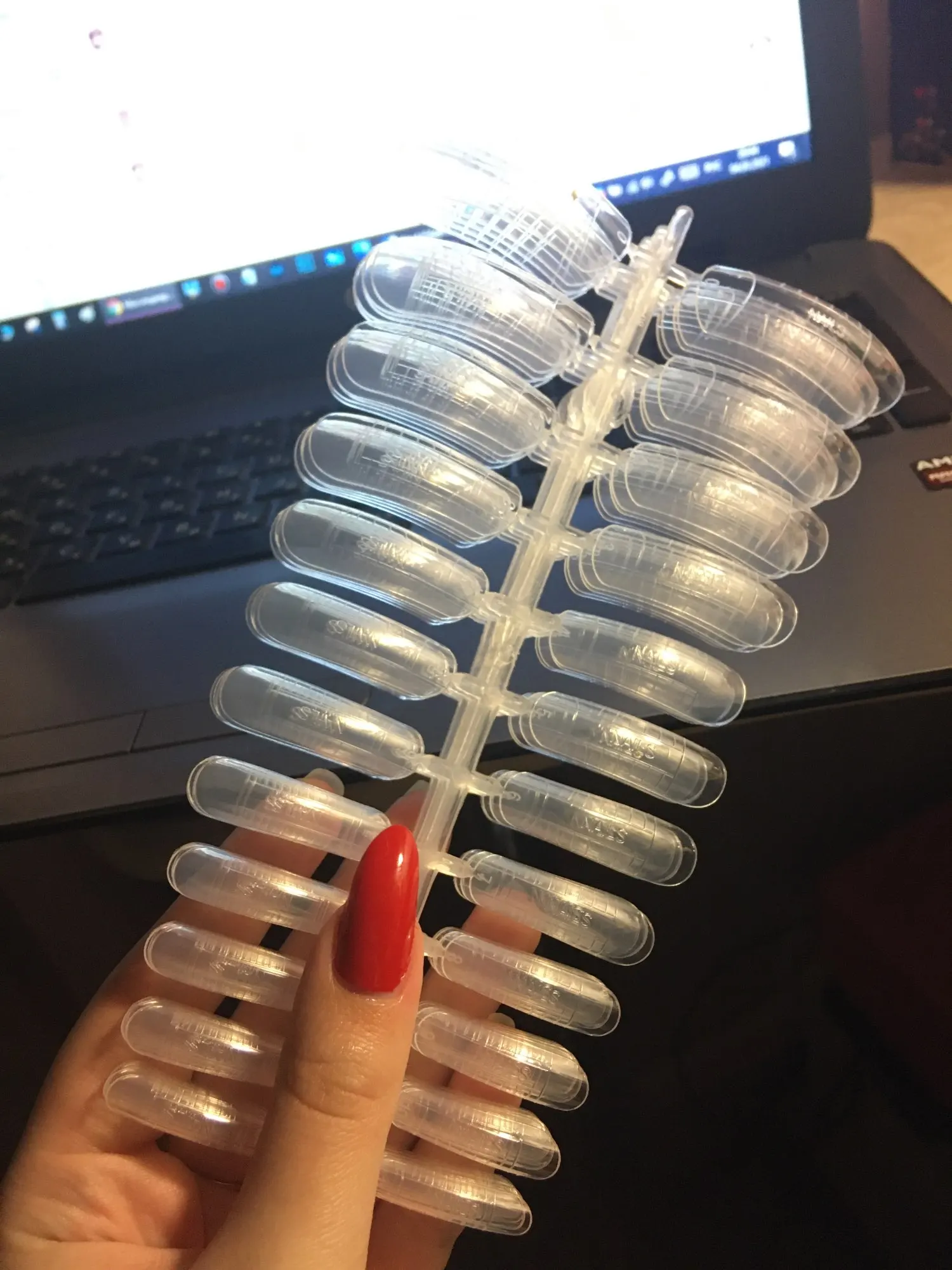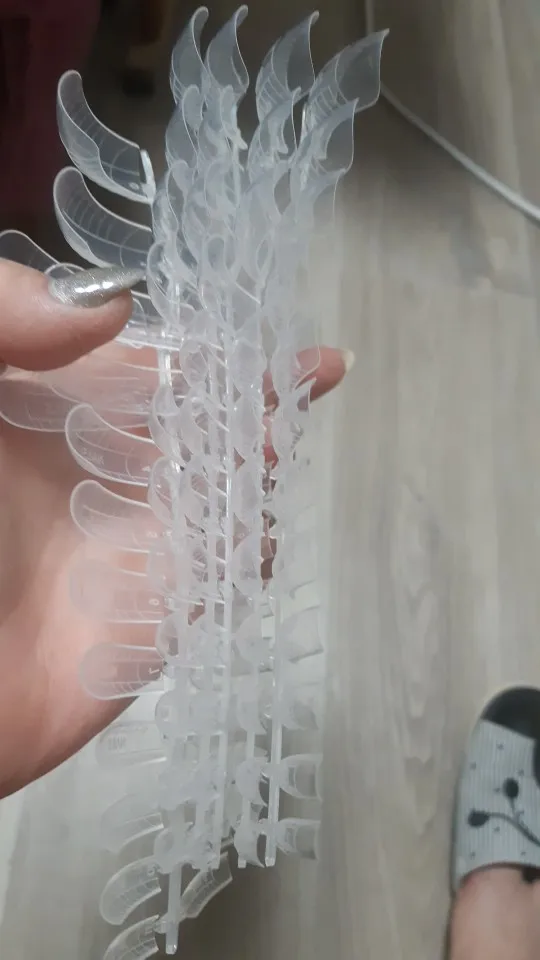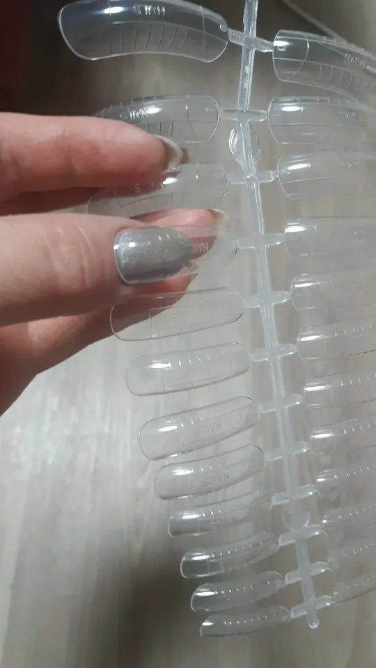 Формы для ногтей, типсы короче пришли все 120штук за месяц ровно до Казахстана/Астана. Я любитель, делаю ногти сама себе, и впервые ими пользуюсь. Честно говоря рада что заказала, размеров много от 0 до 11, и каждого по 10штук. Они многоразовые, изгиб на фото, легко снимать, гнутся хорошо, пример тоже на фото.Прозрачные. Наращивать буду теперь только так, на верхние формы. На фото у меня короткие ногти, жду акрилгель.