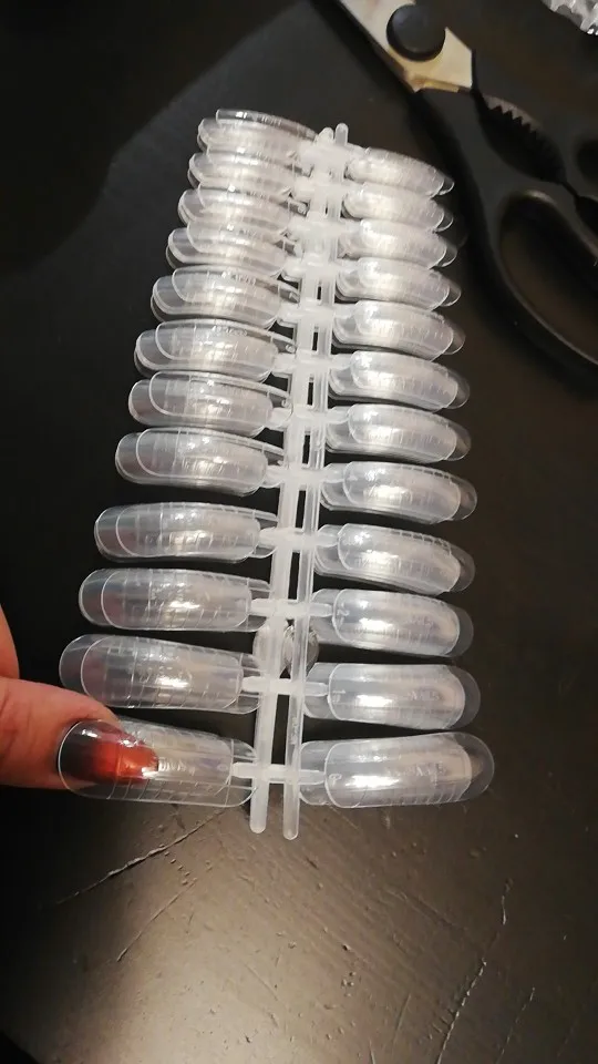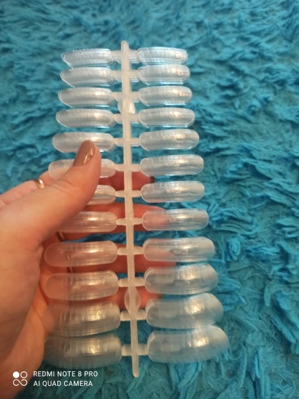 Заказываю эти верхние формы уже не в первый раз, очень нравится делать ими наращивание, потому что все ноготки получаются ровные. Формы подойдут и на очень широкие ногти и на очень узкие, у меня ногти маленькие и узкие, я всегда использую самые последние. Доставка правда долгая, мне шло около месяца