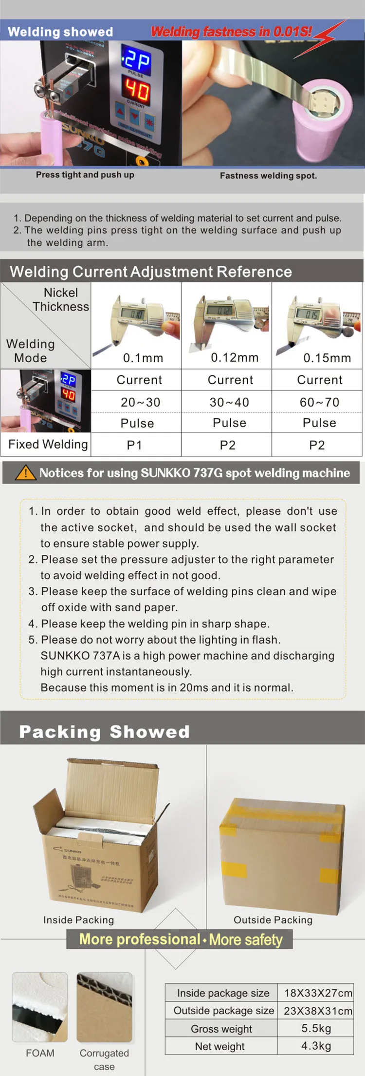 SUNKKO 737G 18650 Аккумуляторная машина для точечной сварки с двойн...