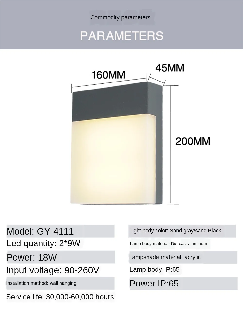 Уличный водонепроницаемый светодиодный настенный светильник 18 Вт, ...