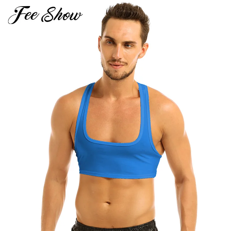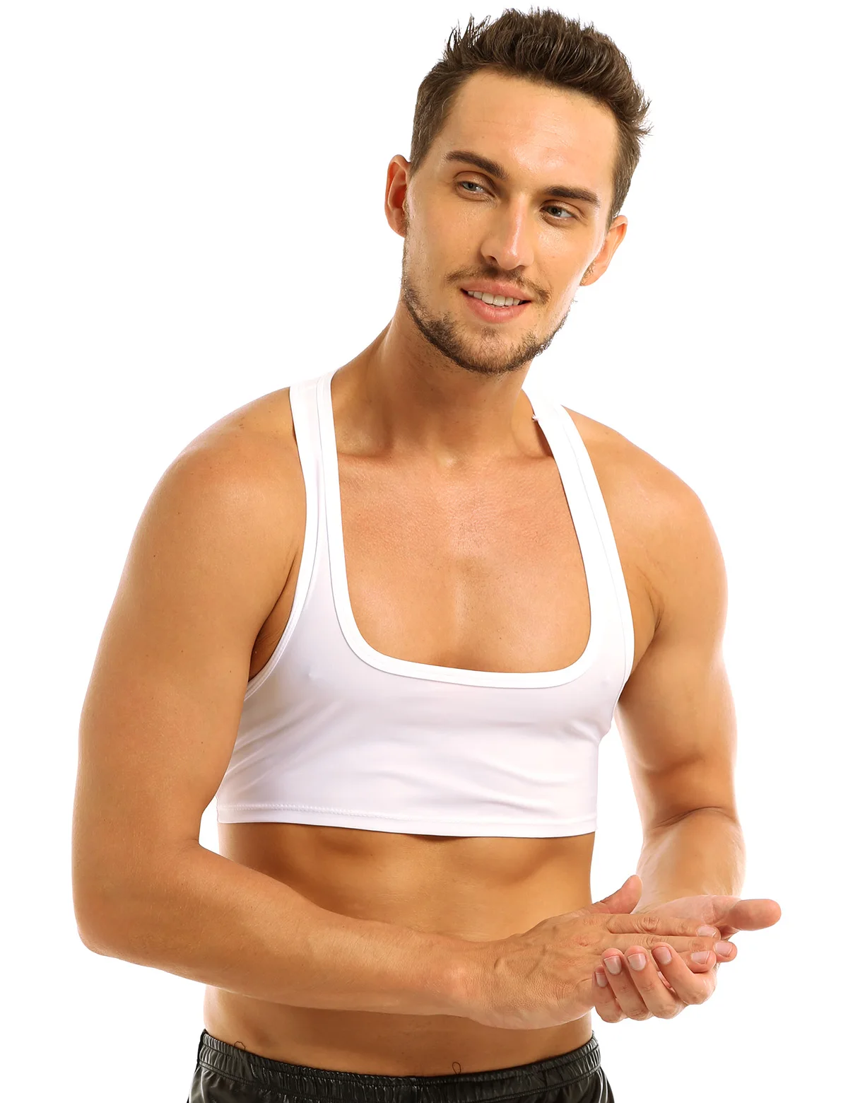 Модный Сексуальный Мужской Топ без рукавов с Y-образным вырезом на спине, футболка, Клубная одежда, сценический костюм, приталенные Короткие топы, Спортивная Клубная одежда