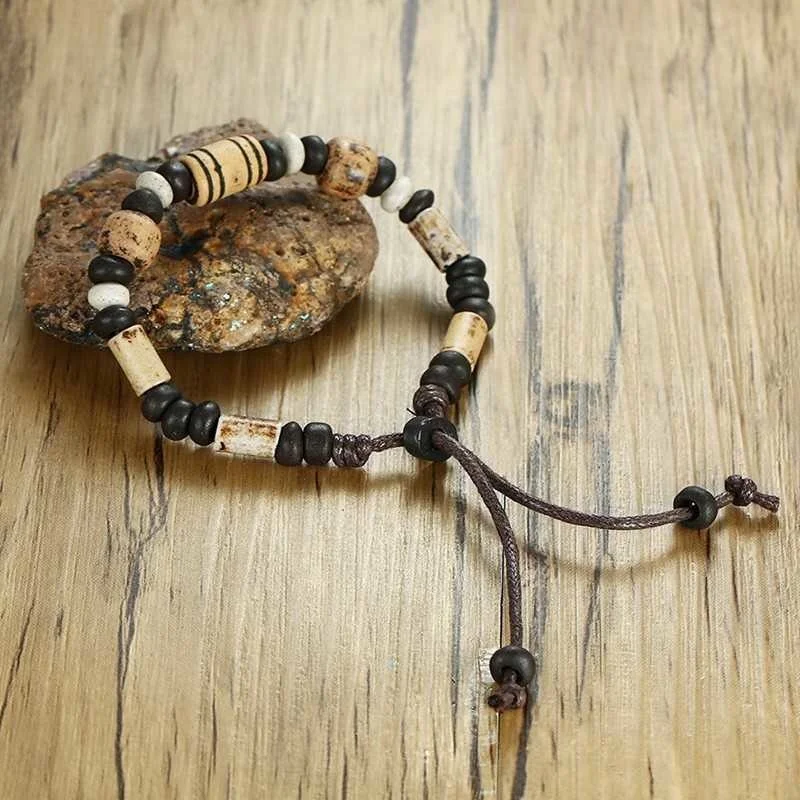 Vnox ретро деревянные бусины Шарм браслет для мужчин. Excollent