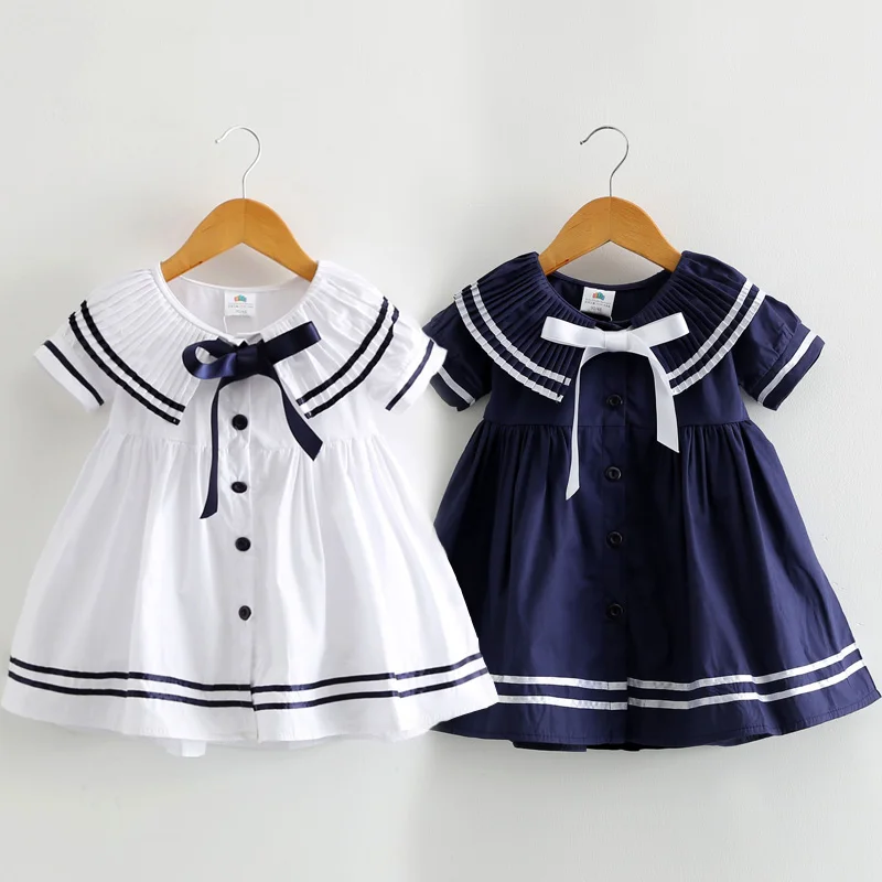 2021 летнее милое детское платье с короткими рукавами, с матросским воротником, в стиле пэчворк, темно-синего цвета для девочек 2, 3, 4, 6, 8, 10 лет