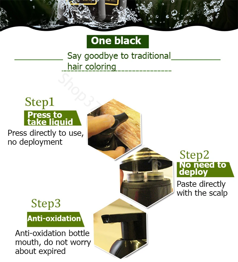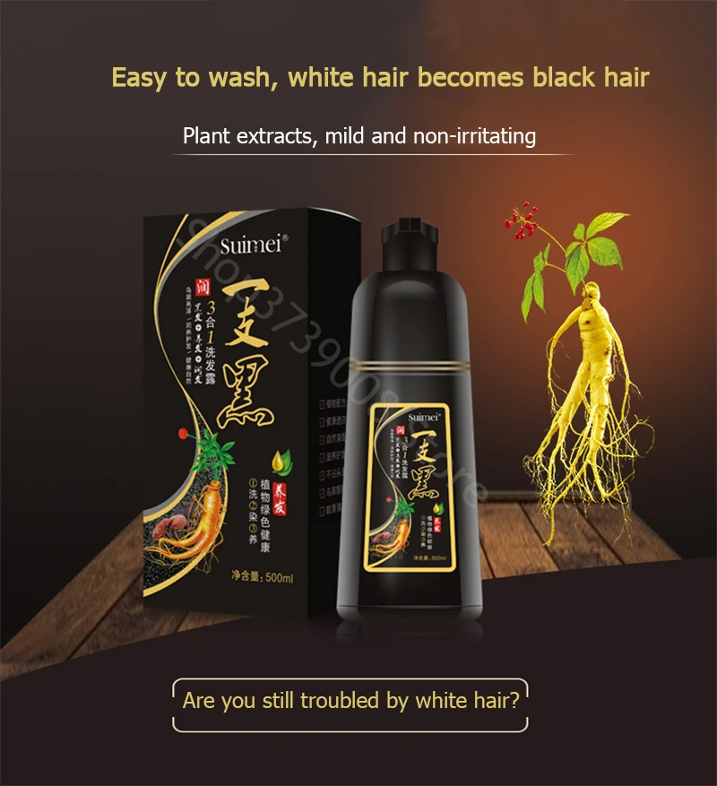 Сделайте ваши волосы черными5 минутНовейшая формула чистого имбиря вернет совершенно новый другой опыт для волос. Натуральный экстракт имбиря, коллаген и эссенция гинкго билоба укрепляют волокна волос изнутри. После мытья волосы будут более блестящими, мягкими и гладкими, хорошо предотвращают нарастание волос и восстанавливают волосы от корней. Специальная формула легко окрашивает волосы белого, серого и желтого цвета, не содержит аммиака на 100%, не имеет резкого запаха, не вредит волосам, не ликует, не прилипает к коже и ткани. Полностью пигментный фактор идеально покрывает белые волосы, а затем полностью покрывает натуральные черные волосы.Имбирный черный шампунь для волос не аллергическая краска для волосНовые окрашивающие черные волосы, вы не будете использовать какие-либо красящие химикаты, которые содержат аммиак, который может навредить вашим волосам.Он прост в использовании и дает вам естественный цвет, не как другие красящие вещества, которые дают вам Темный неестественный цвет.Содержит натуральные гербалы и оливковое масло, которые защищают кожу головы от аллергии.Формула:* Китайский Экстракт черной оливы* Экстракт имбиря* Экстракт ганодермы трутовика лакированного* Экстракт женьшеня (экстракт корня женьшеня Panax)* Экстракт алоэ вера* Многоцветный многоугольник* Аюрведические травы и т. Д.Пять простых шагов дадут вам черные волосы:1. Намочите волосы и вытрите воду на волосах.2. Перед открыванием черного шампуня для волос наденьте перчатки (в комплекте).3. Используйте весь черный шампунь для волос и нанесите на волосы.4. Хорошо массируйте волосы в течение 5 минут, пока Шампунь не распределится равномерно на коже головы.5. Хорошо промойте водой.