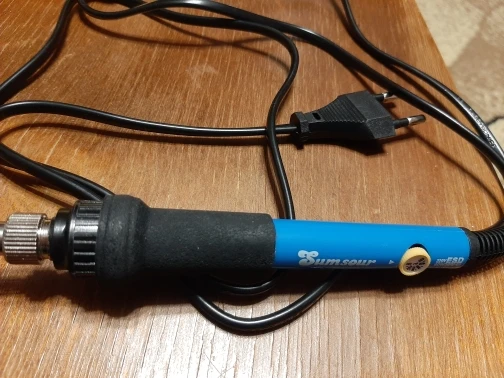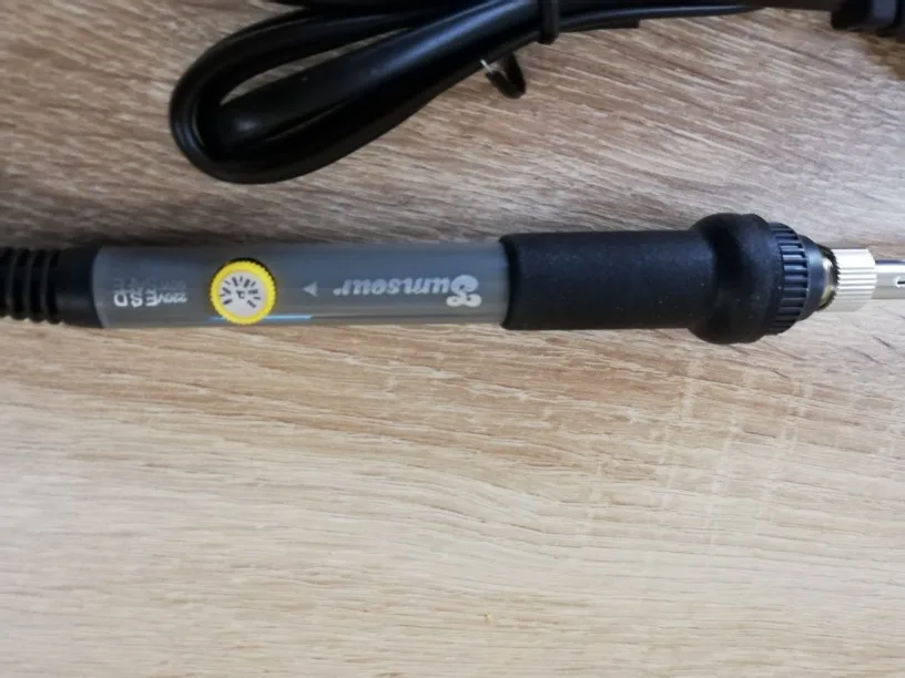 Третий паяльник отсюда.Первый отдал друг.Он подобрал резисторы,в общем,все более-менее.Второй купил осенью 2020.Приличная сборка,корпус,комплектующие.Плата как кустарная,хотя наглядно понятная.Померил,посчитал,подобрал резисторы - min и max ~ совпадают со шкалой,середина смещена - 350 это ~300 на жале.Сегодня получил третий(думал уже знаю,что нужно сделать,поэтому купил там же) - часто нужно сразу несколько паяльников с разными жалами и мощностью."ДЕРЕВЯННЫЙ" корпус,комплектующие из подвала,сборка "с колена".Зато фабричная(или как) плата,показания температуры на жале примерно совпадают со шкалой во всем диапазоне(если в розетке ~220V,если <или> то и температура туда же).Один и тот же производитель,один и тот же продавец и нескончаемые вариации...В общем - Я ЕГО СЛЕПИЛА ИЗ ТОГО ЧТО БЫЛО...999 звезд РЕБЯТАМ за находчивость,изворотливость и мн.др.!!!