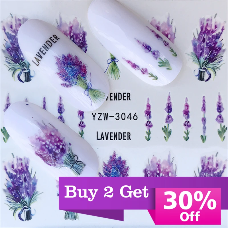 1 шт. 2022 Лавандовый букет водные наклейки украшения для ногтей фиолетовый Цветущий цветок слайды красота наклейки для ногтей