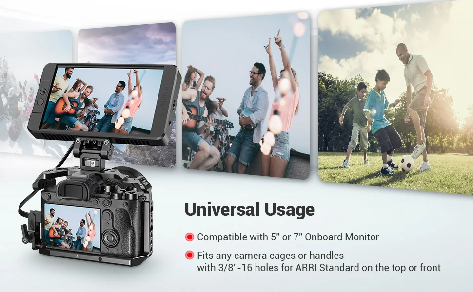Совместимость:5 ”или 7” бортовой мониторЛюбая камера с ARRI 3/8 ”-16 нитями