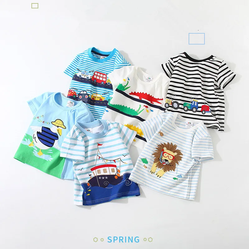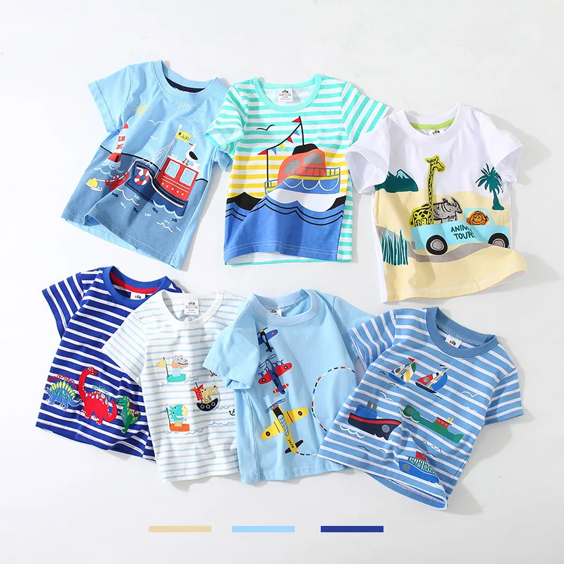 Лето 2021, От 2 до 10 лет, детская одежда для дня рождения, с принтом динозавра, машины, полосатые, с коротким рукавом, базовые Топы, футболка с героями мультфильмов для детей, мальчиков