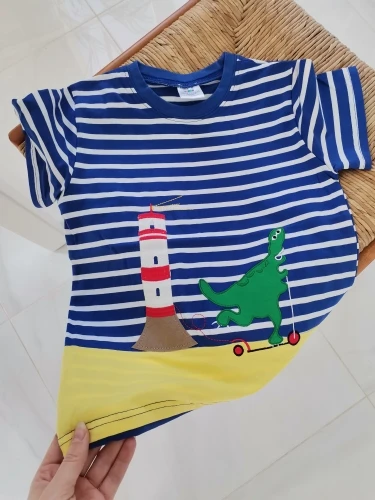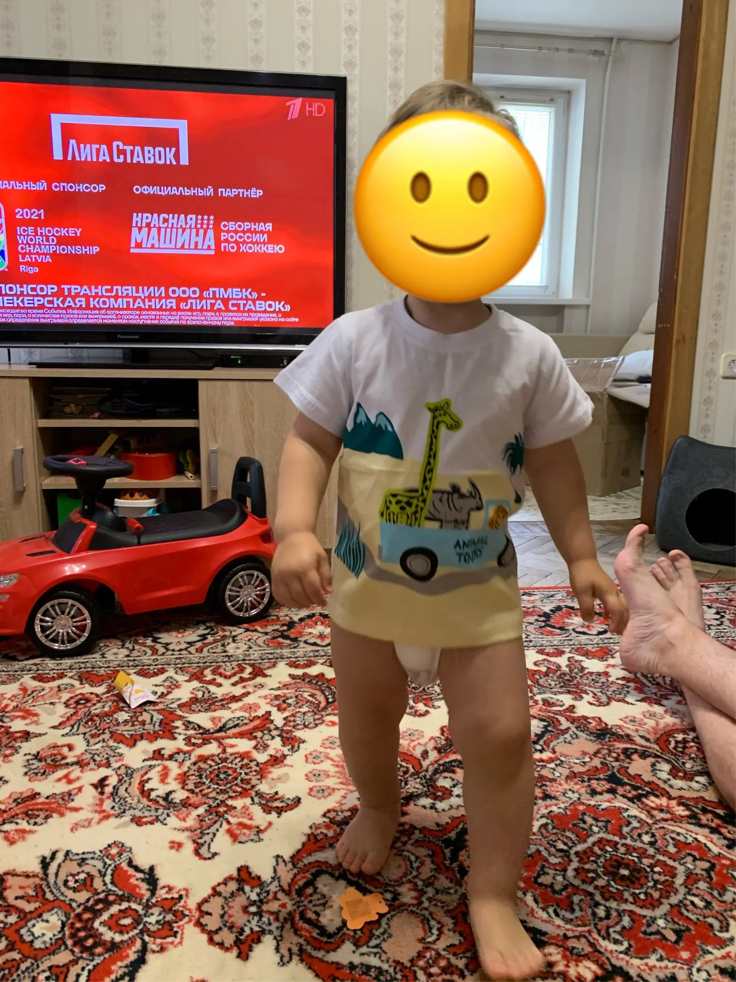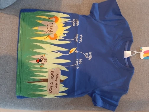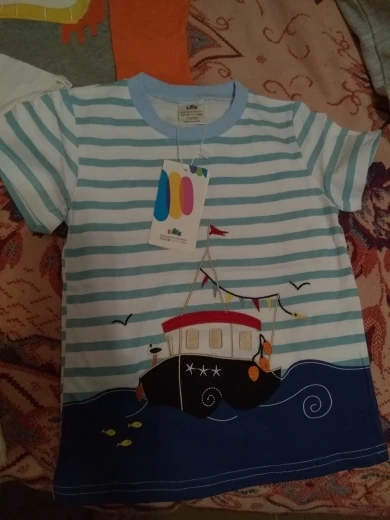 Футболка выглядит издалека красиво, но не понравилась aппликация. Вся передняя часть продублирована очень жестким материалом так, так что футболку можно поставить. Ребенок не сможет ее носить. Задумка хорошая, но качество подкладочного материала ужасное! В магазине никогда бы не купила именно эту модель. Очень жаль! Покупала много вещей в этом магазине, и товар всегда радовал.