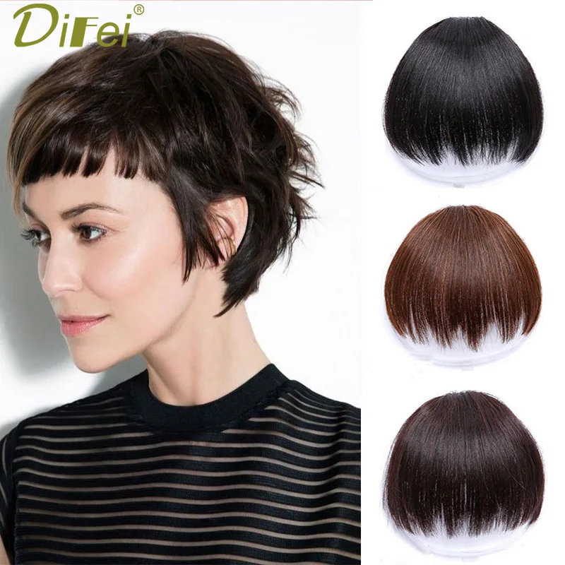 Женская микро-прямая Высокотемпературная синтетическая челка DIFEI, удлиняющая челка, натуральная бесшовная челка