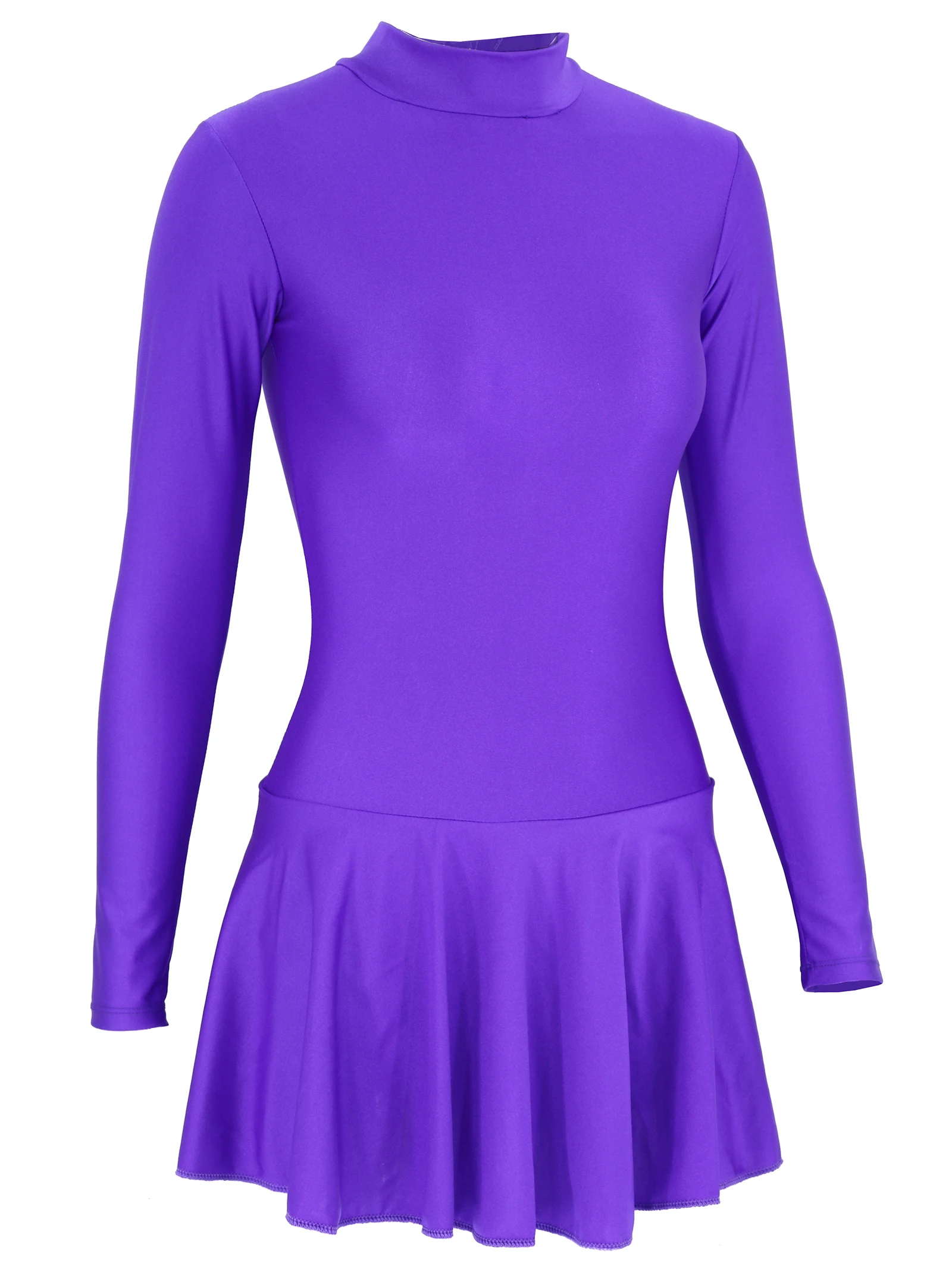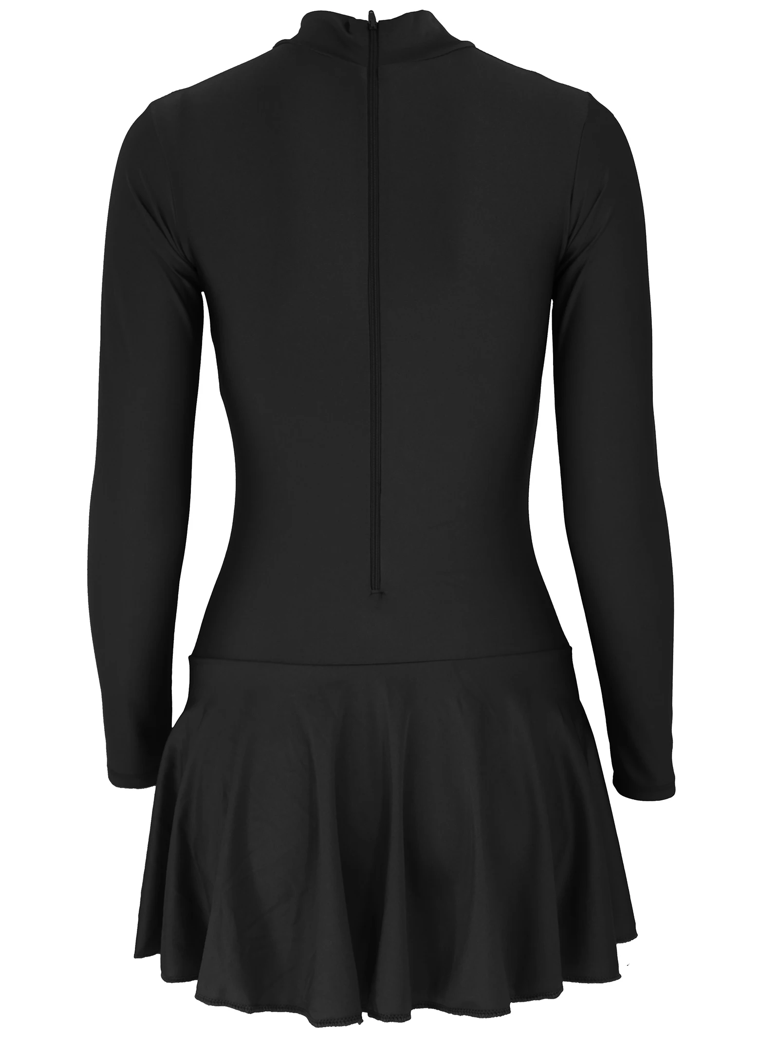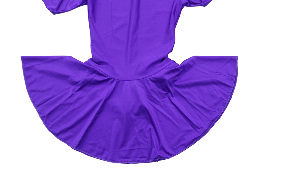 Женское слитное танцевальное боди с юбкой и длинным рукавом
