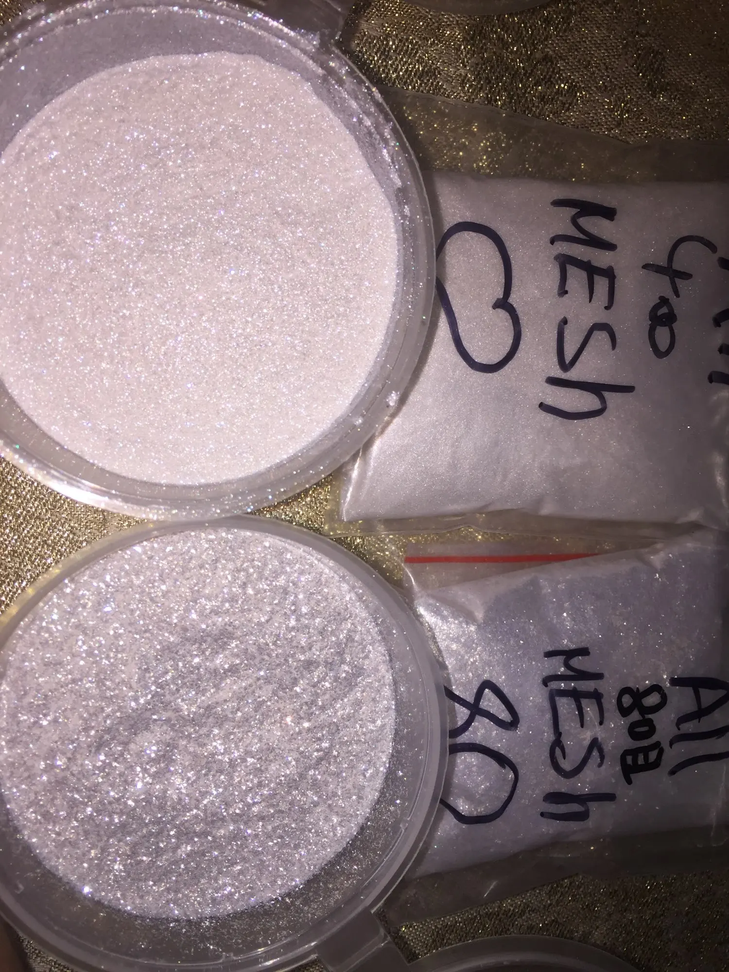 Если бы можно было поставить 100 баллов я бы прставила!!!это идеальное качество!!!!идеально белый перламутр и он разноцветный!!!!безумно красиво смотрится!!!!80 mesh крупнее,400 mesh мельче (уже почти как пигмент но ещё сверкает)Идеально то что хотела спасибо за качество!))теперь буду у вас всегда заказывать )наконец нашла качество!!!правда отправка была очень долго(и в итоге дошло позже чем все другие посылки,надеюсь в следующий раз отправят быстрей)
