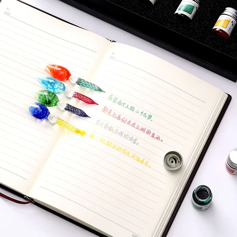 Перьевая ручка из хрустального стекла, ручка для подписи, перьевая ручка для бизнеса, офиса, школьные принадлежности, подарочный набор, набор ручек и чернил