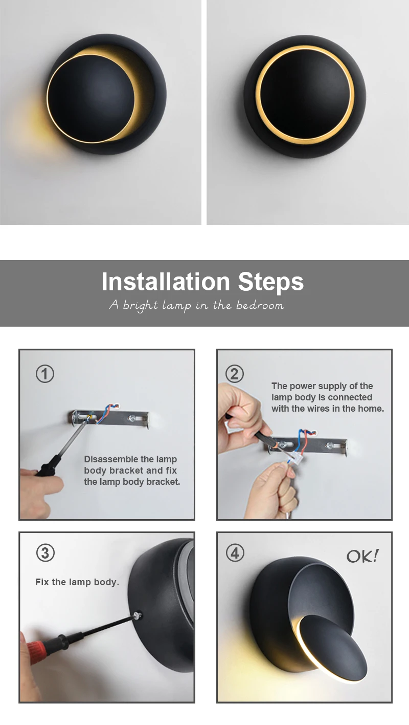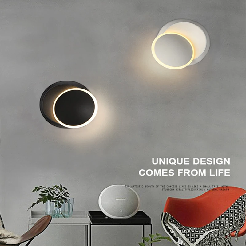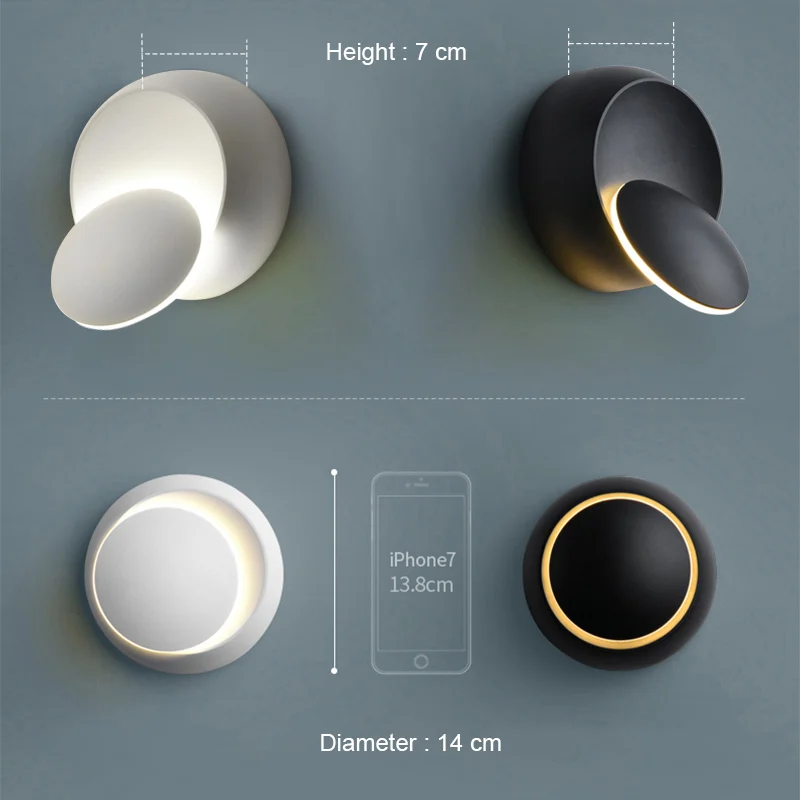 Светодиодный настенный светильник с вращением на 360 градусов, регулируемые прикроватные светильники, белый черный креативный настенный светильник, черный современный круглый светильник для прохода