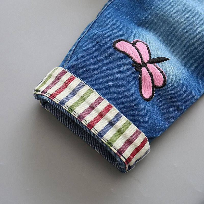 Джинсы DIIMUU для маленьких девочек, комбинезоны, длинные штаны, повседневная одежда с принтом, детские штаны с эластичным поясом
