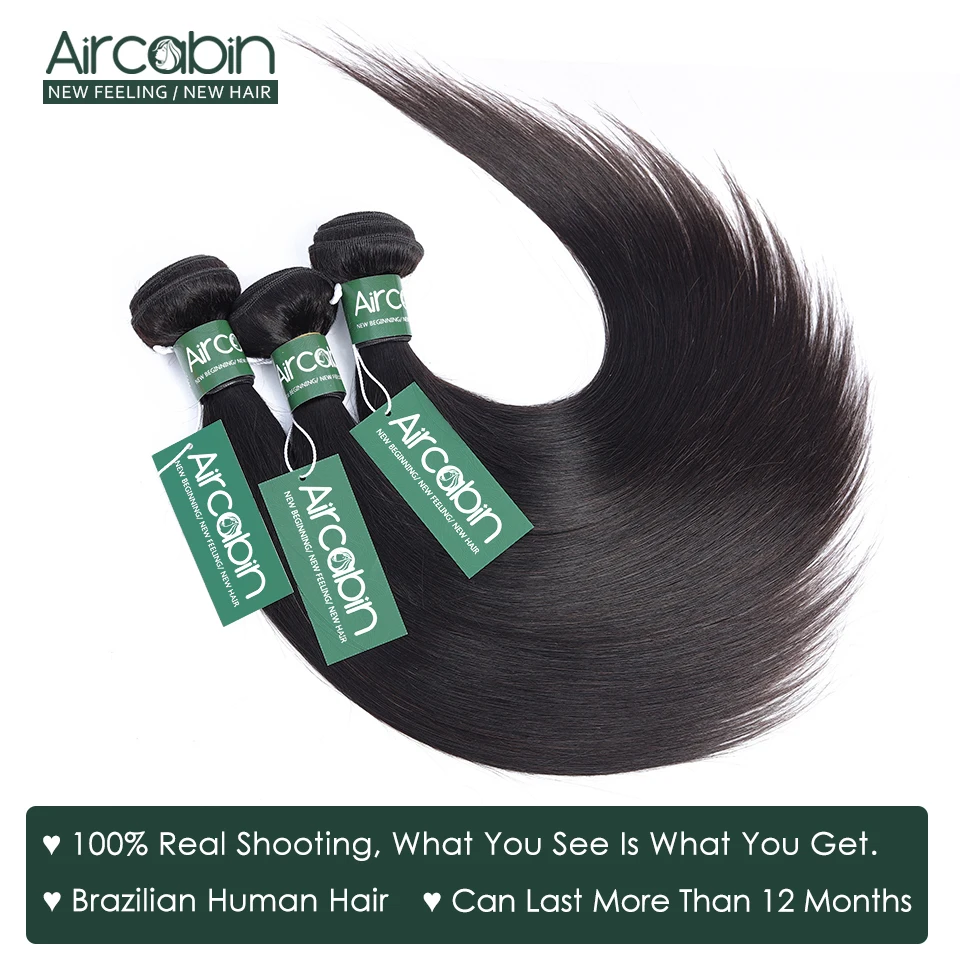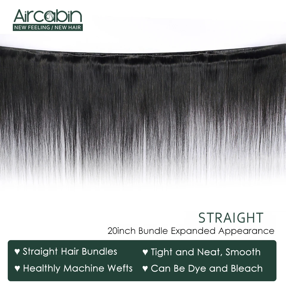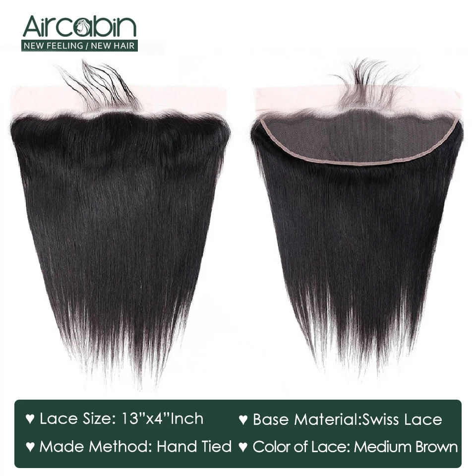 Aircabin прямые волосы пряди с 13x4 кружева Фронтальная застежка бразильский Реми человеческие волосы 3 пряди с закрытием
