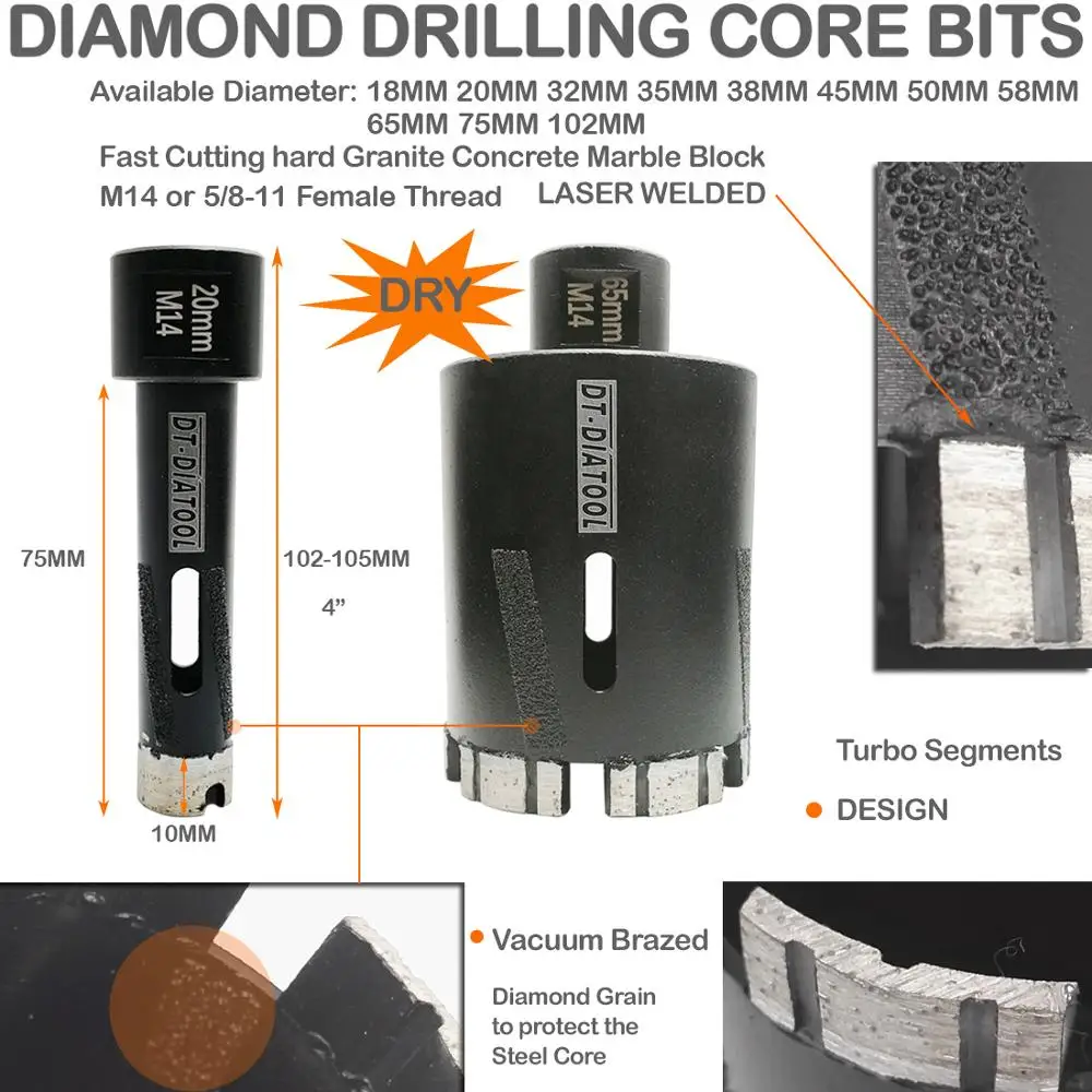 Название продукта: 2шт 20 мм лазерная сварка с боковой защитой M14 резьба алмазные сухие сверлильные коронки