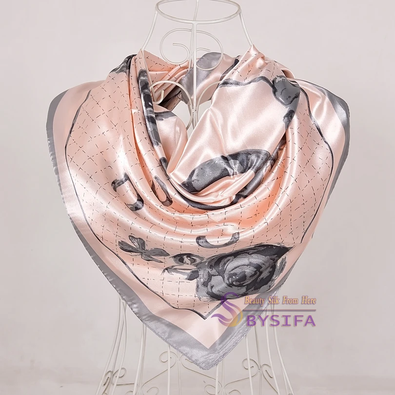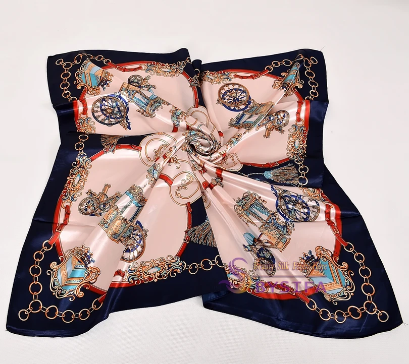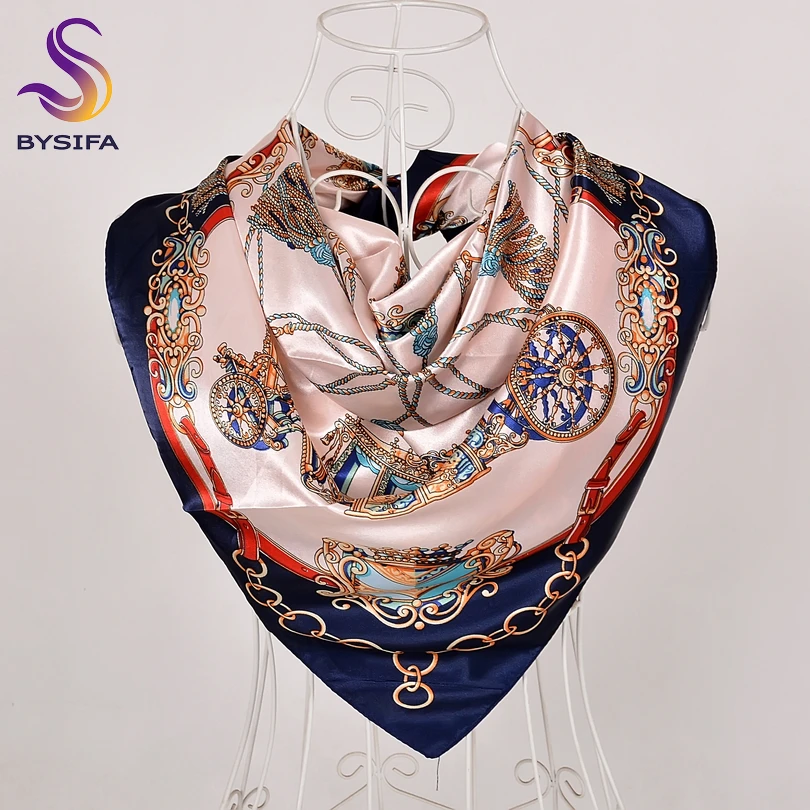 Женский шелковый шарф BYSIFA, темно-синий Шелковый шарф-накидка размером 90*90 см, мусульманский головной платок накидка на весну и осень