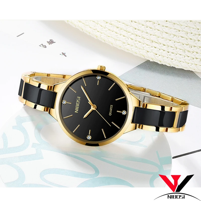 часы женские наручные NIBOSI Для женщин часы Водонепроницаемый Лидирующий бренд роскошные часы Для женщин с керамикой и металлический ремешок часы женские