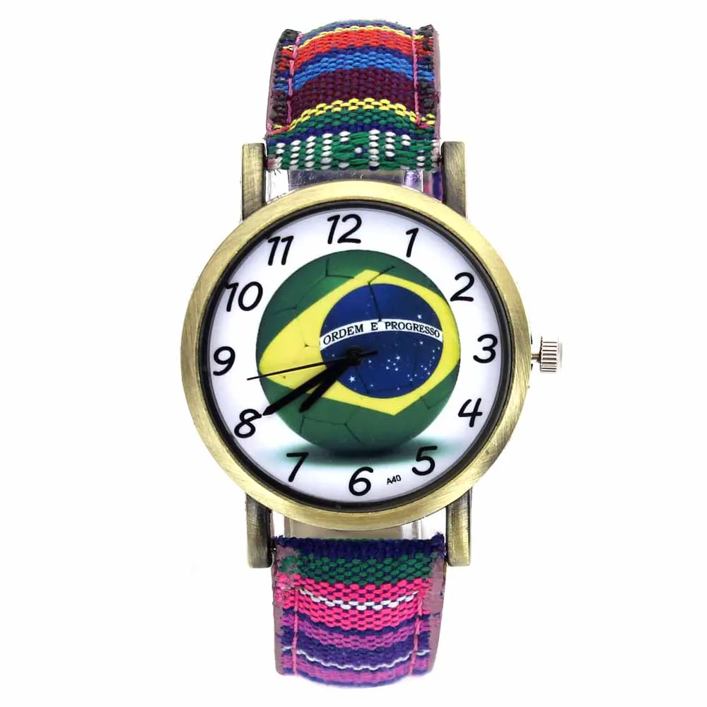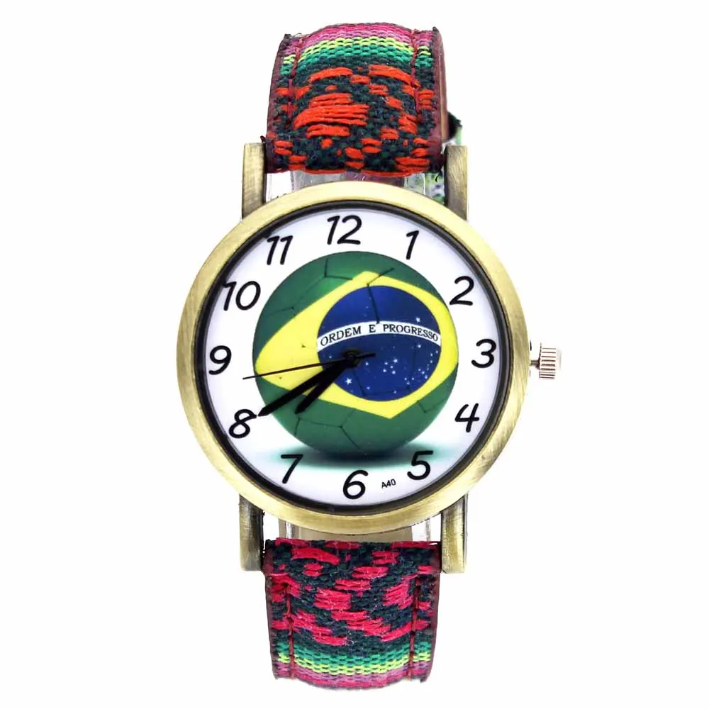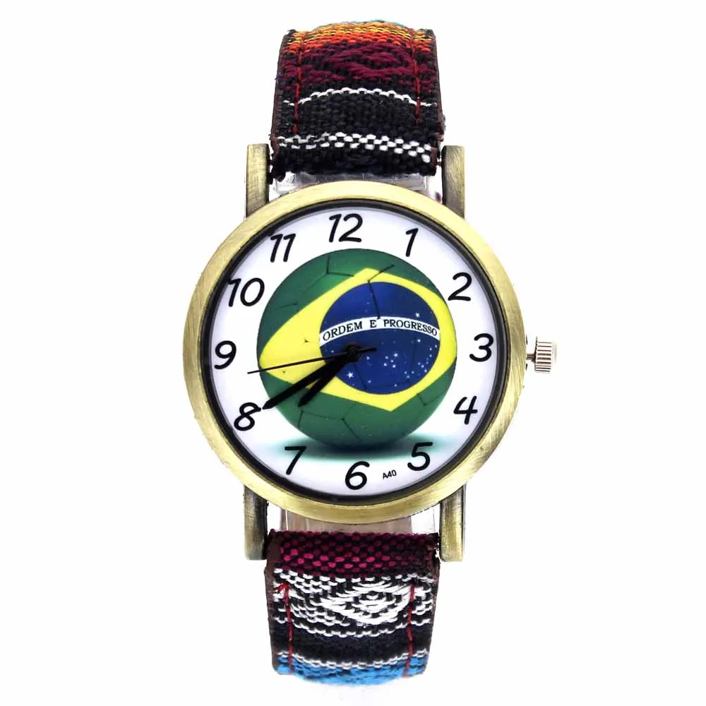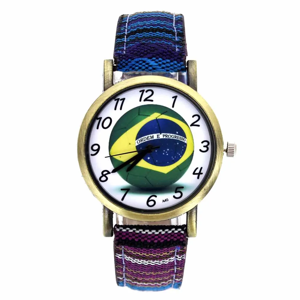 Мужские и женские наручные часы, с полосками из джинсовой ткани, с изображением бразильской футбольной команды