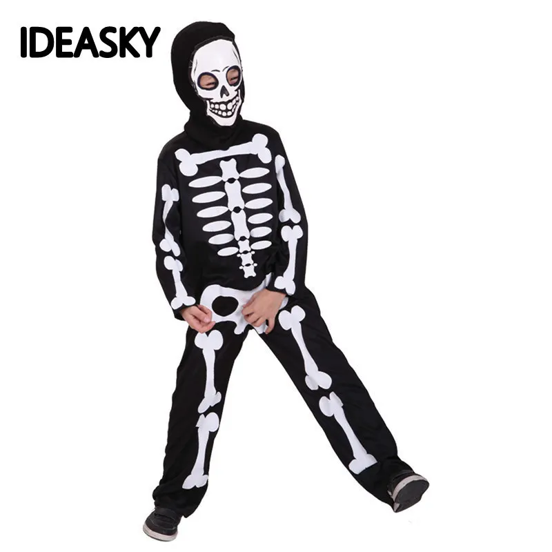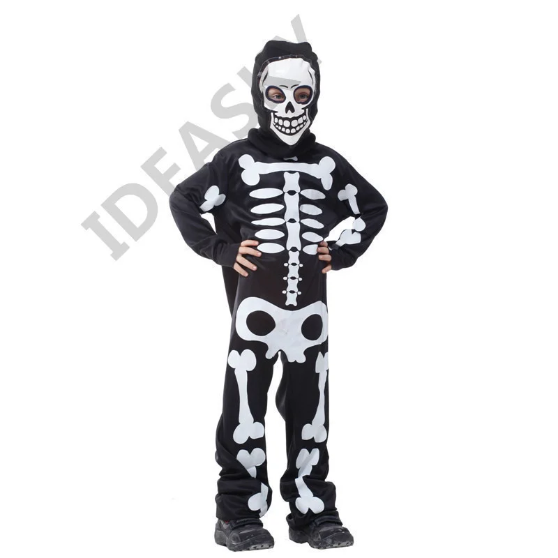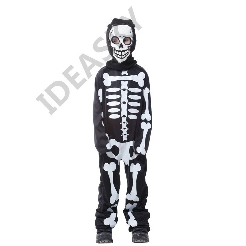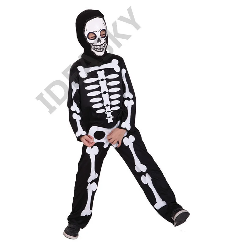 Карнавальный костюм скелета на Хэллоуин для мальчиков и девочек, маскарадный костюм демона, страшный костюм