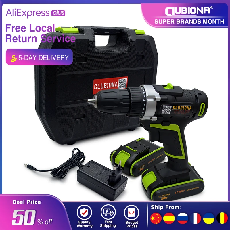 Мощная и сертифицированная электрическая дрель CLUBIONA с литий-ионным аккумулятором, 20 в