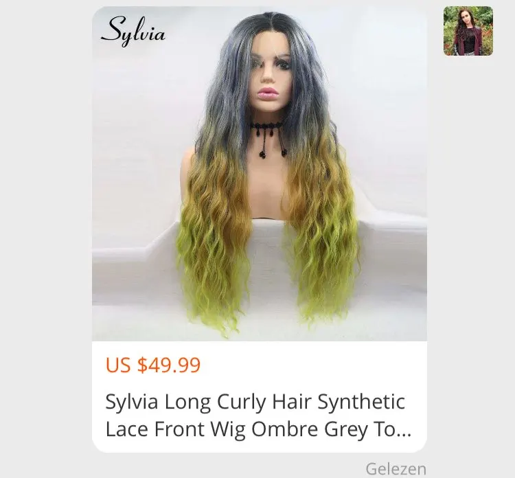 Sylviaрозовый и зеленый длинные волнистые волосы, синтетические кру...