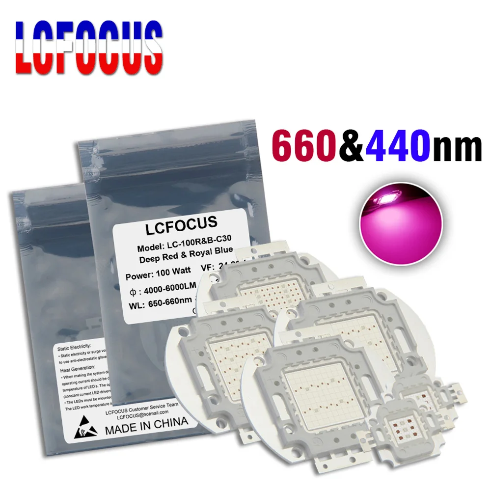 Лампа для выращивания растений, 10 Вт, 20 Вт, 30 Вт, 50 Вт, 100 Вт, 200 Вт, 300 Вт, рост светодиодный чип нм + ярко-синий, Комнатные растения, цветы нм