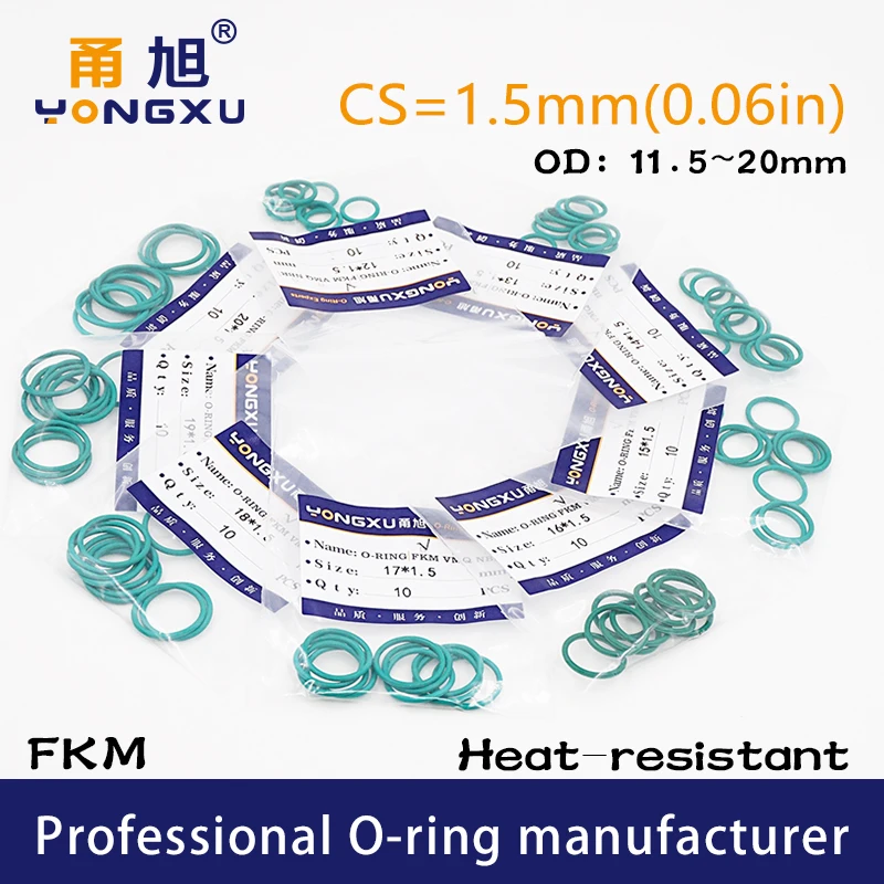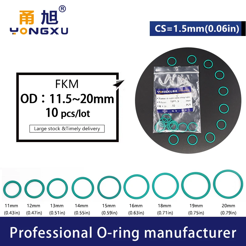 Уплотнительные кольца Green FKM 10 шт.лот, уплотнительные кольца из флюоровой резины CS1.5mm od11,5121314151617181920*1,5 мм, уплотнительные кольца, уплотнительные кольца, шайба