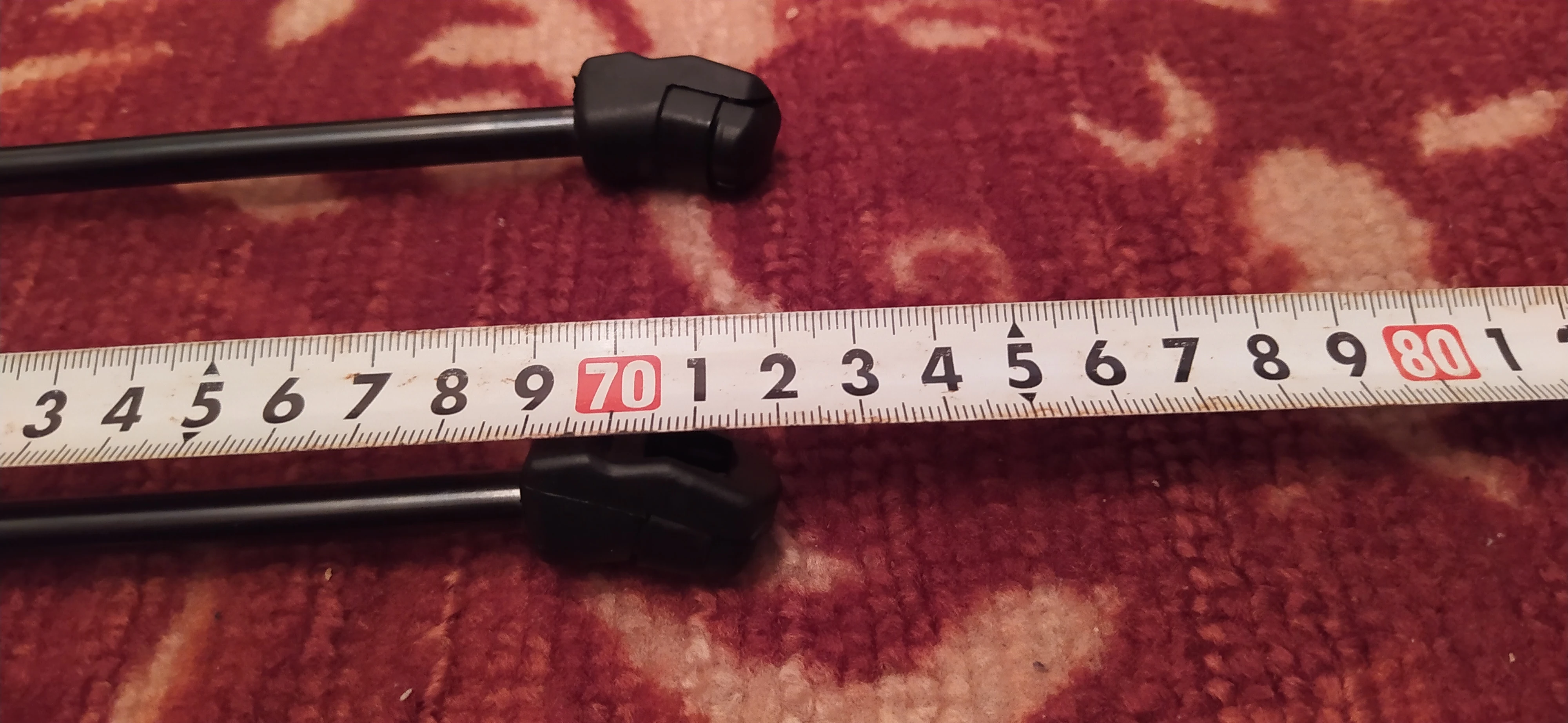 надеюсь мой отзыв поможет многим с решением, брать или не брать, ждал долго около 2 месяцев, 1 заказ вернулся продавцу, мне деньги, пока ждал второй заказ, нашёл в автомагазине 1шт, производства sata, за 650р, поставил временно её пока ждал с Алика заказ. И наконец дождался, продавец каким-то образом умудрился отправить в другое отделение почты, по адрессу транспортной компании с первого неудачного заказа.....)) смог удивить, но не критично. после получения сравнил их с тем что купил у себя на местности... Как оказалось, sata после 2х месяцев работы оказалась на много сильнее чем с Алика безымянные опоры капота. купил я их 2 штуки. по силе подъёма капота обе слабее чем 1 sata. и по деньгам дороже и ждать дольше. качество самый стреёмный китай! газа в них мало. знал бы сразу не стал заказывать. 1315р обошлись 2 шт. позже попытаюсь померить силу давления для сравнения . и выложу фото.