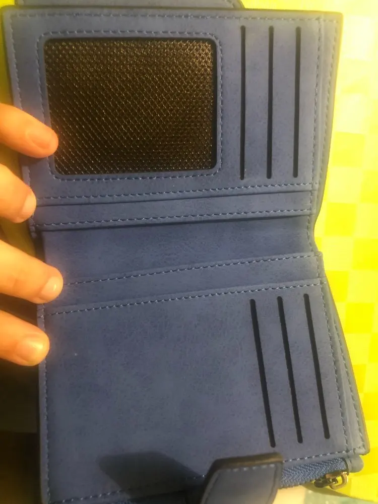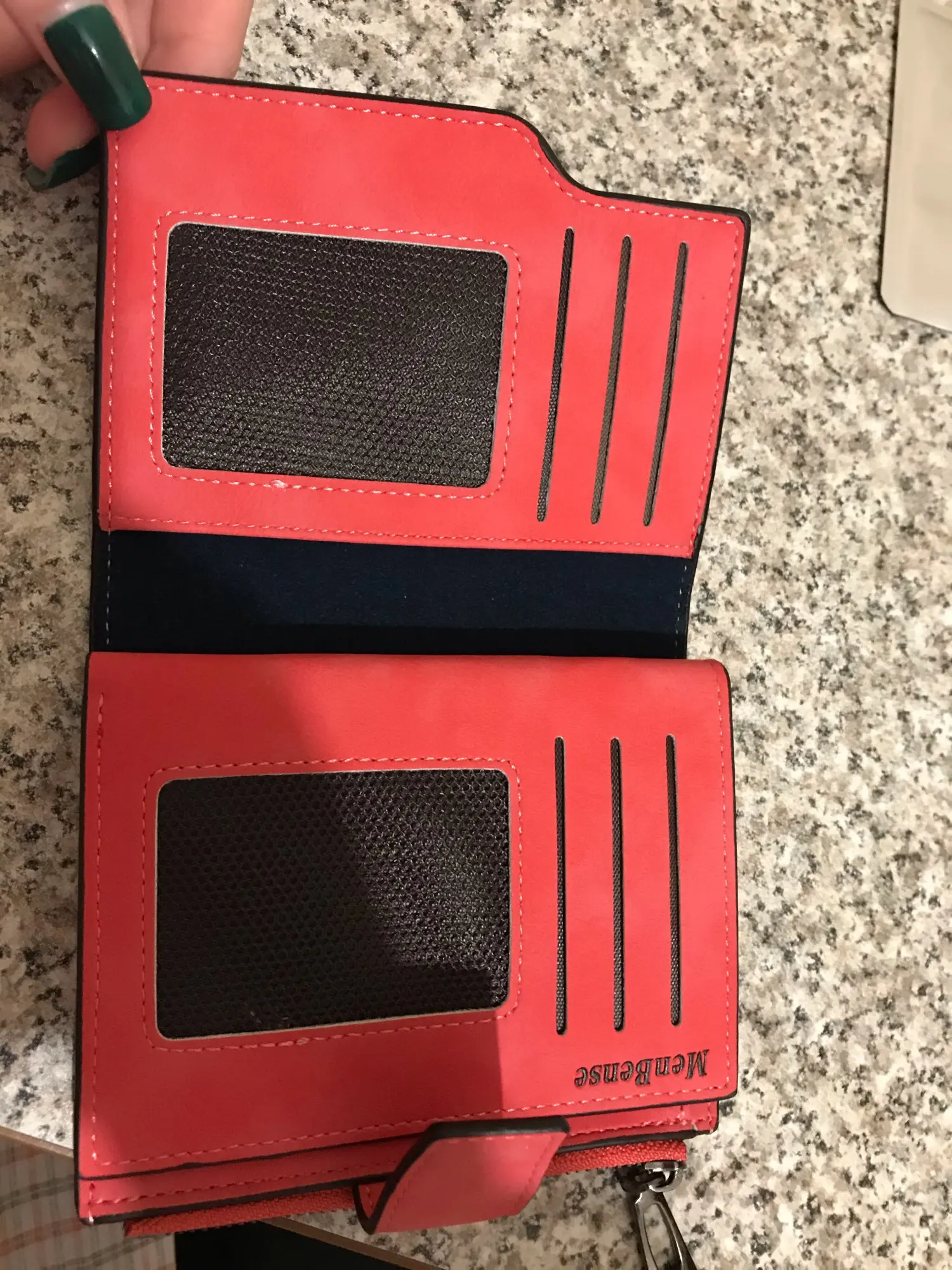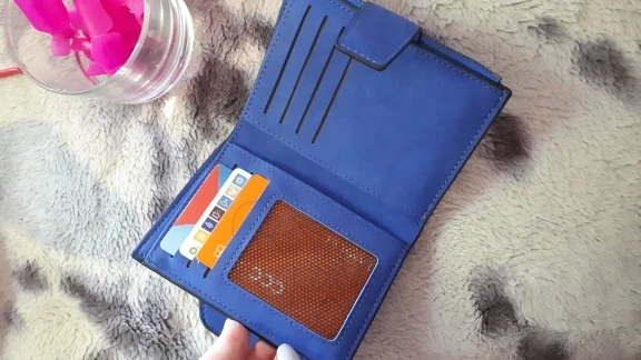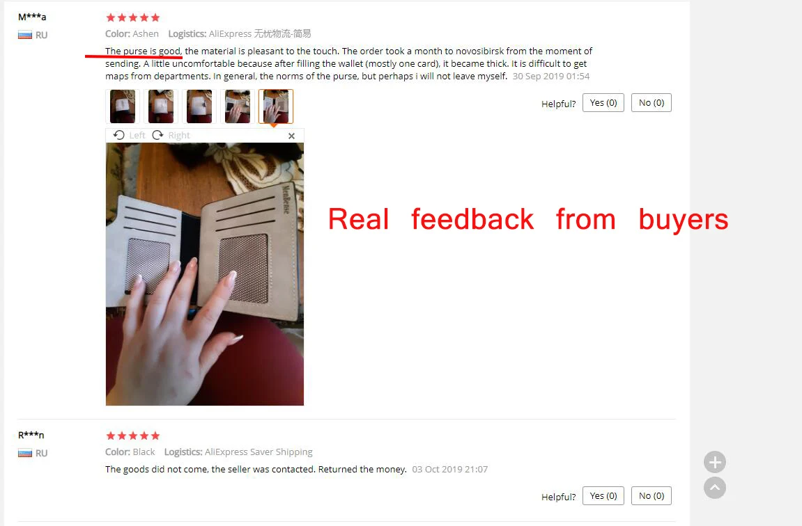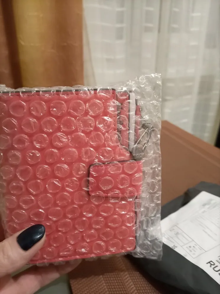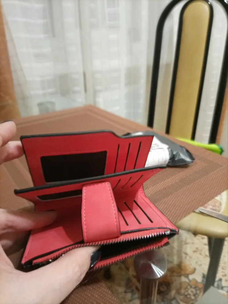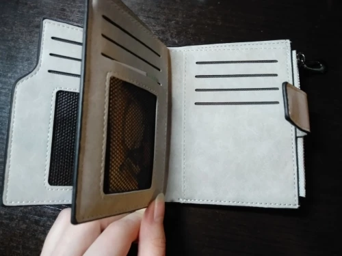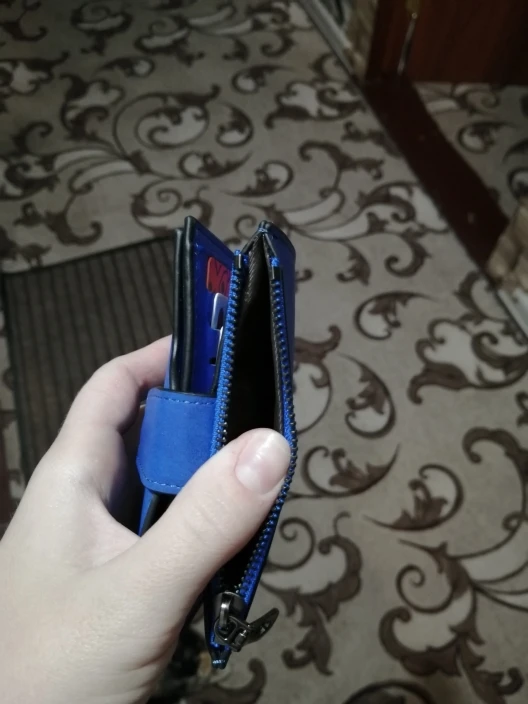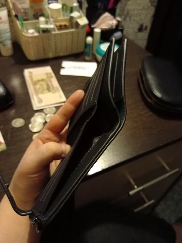 Кошелек пришёл за рекордные 7 дней. И это единственный плюс. Из минусов: на нём пятна клея, кошелек не выпрямляется во всю длину, русские бумажные деньги помещаются с трудом, карман для мелочи неудобный и очень плотный, непонятная дыра внизу кошелька (видно на фото), подкладка шуршит как бумага и в целом материал вещи очень дешевый и некачественный. Ужасный запах был как только открыла его. Открыла спор, деньги вернули. Крайне разочарована. К покупке не рекомендую, остальное на ваше усмотрение.
