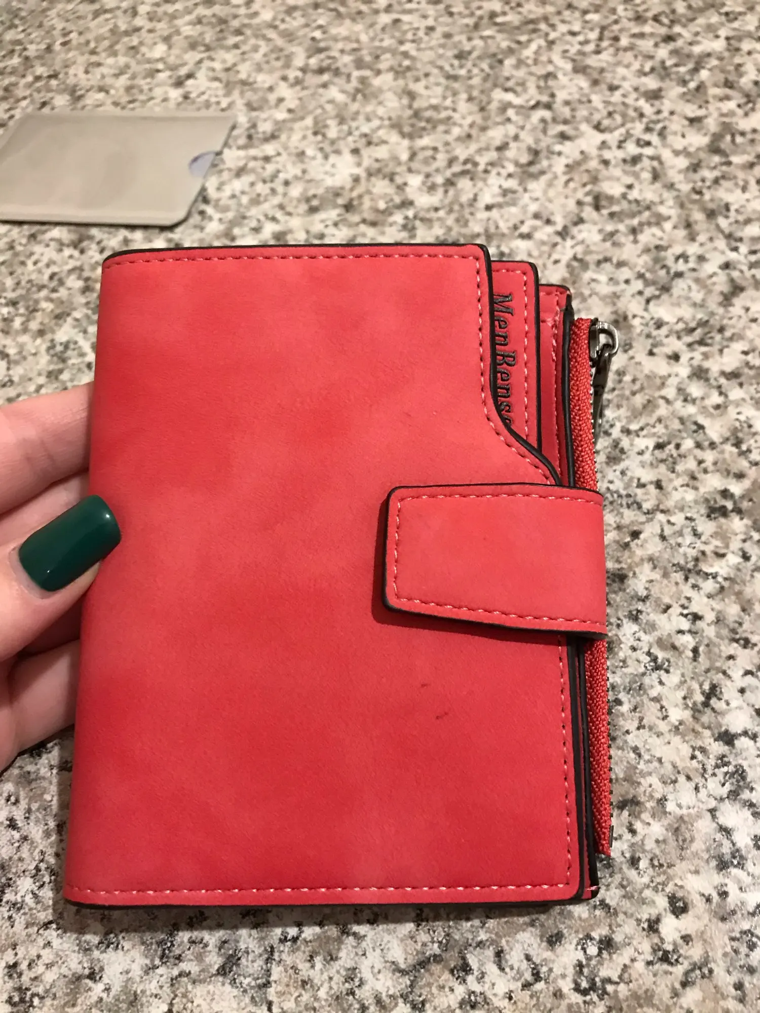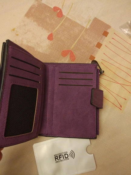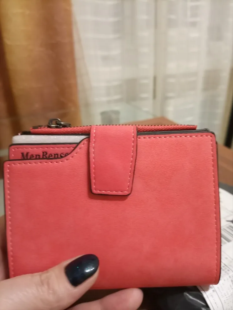 Получила кошелёк. Выглядит хорошо. Покупала его не для себя, а для мамы. Молния заедает, не знаю, как она будет открывать отделение с мелочью. Дошёл очень быстро.