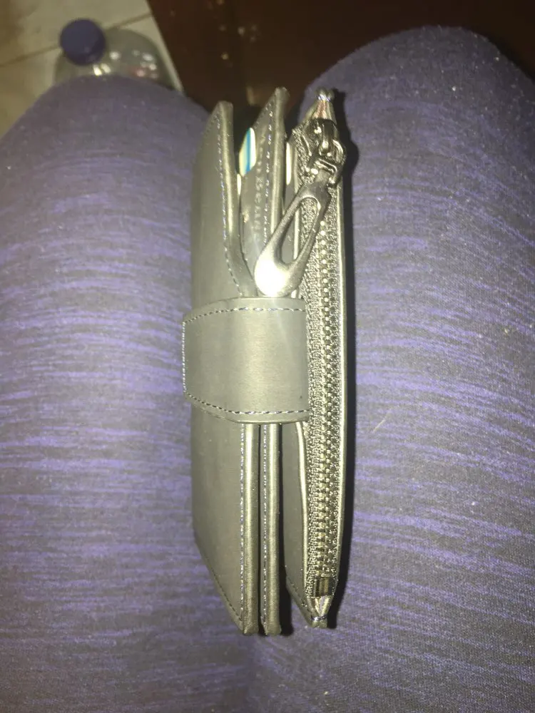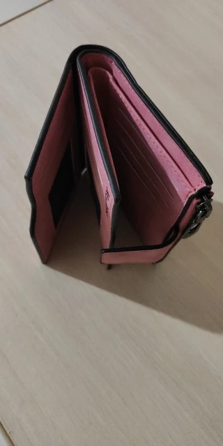 Кошелек хорошо, красивый. Такой, как на фото. Все застежки целые. Есть немного запах, но он выветрится.