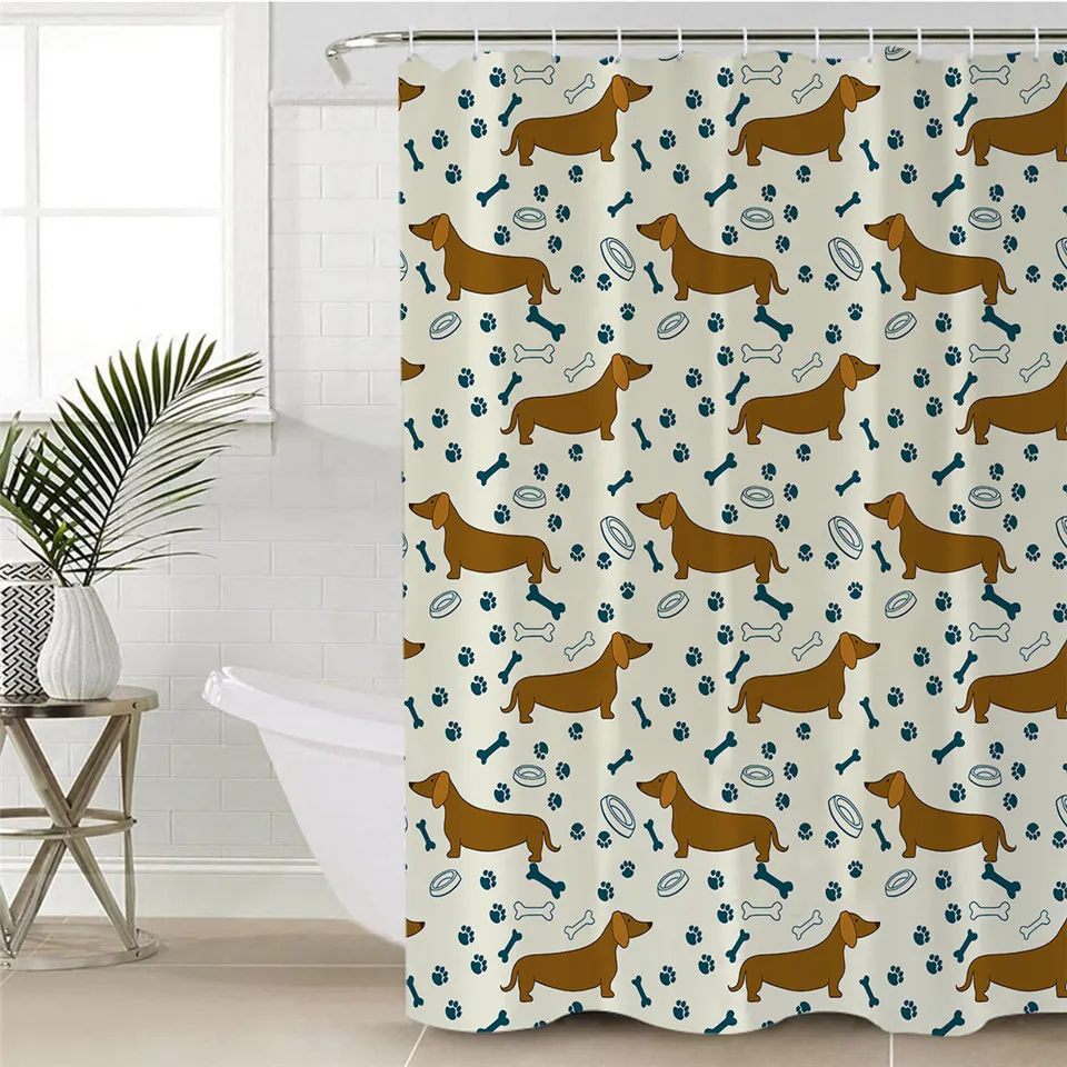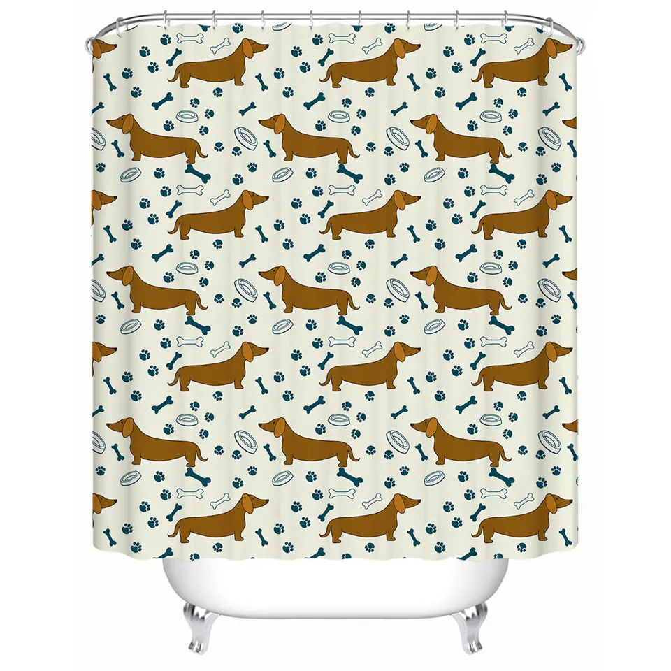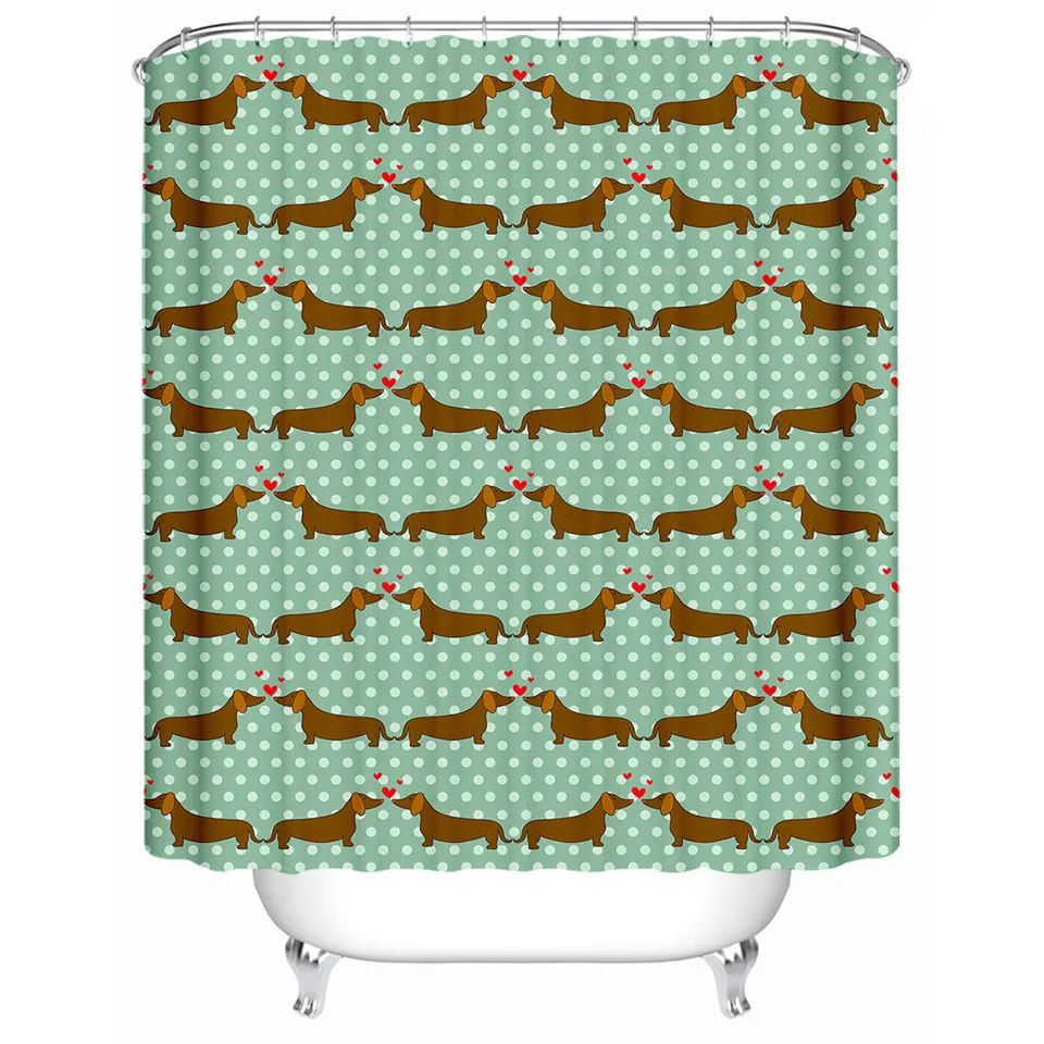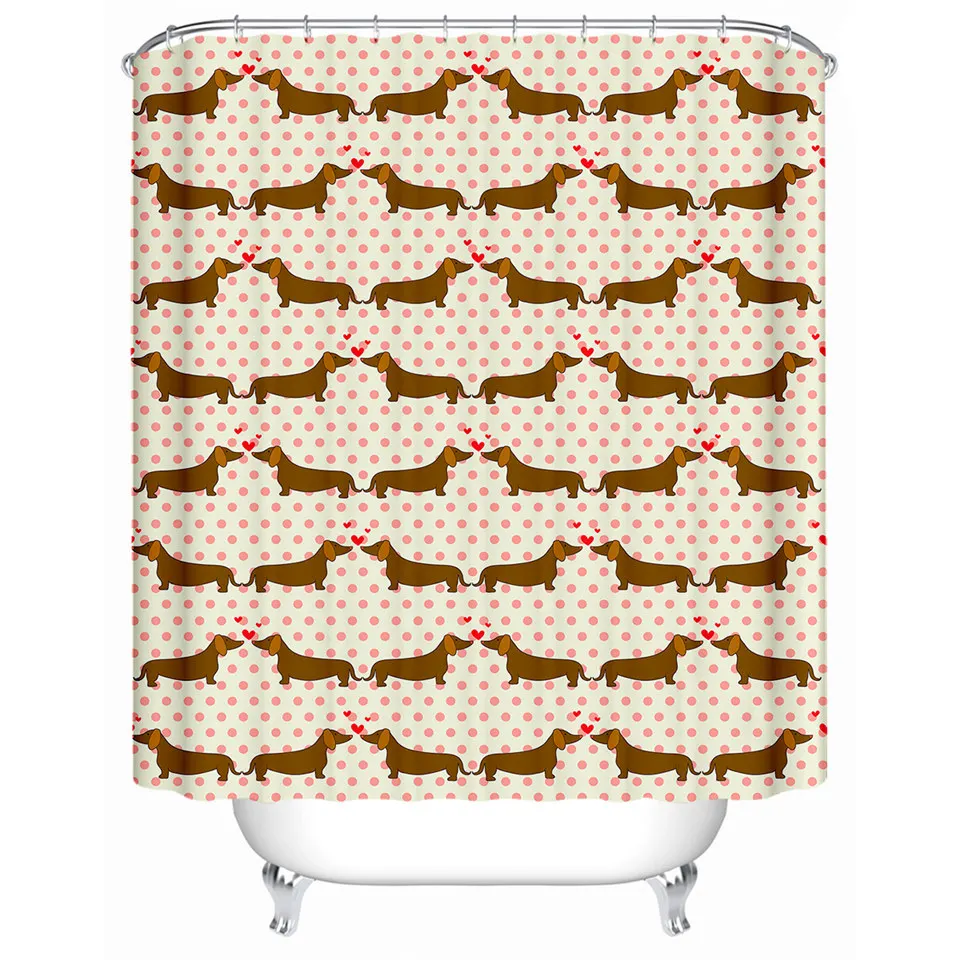 Занавеска для душа BeddingOutlet из полиэстера с изображением таксы, мультяшной собаки, водонепроницаемая занавеска с крючками, Геометрическая полосатая детская занавеска для ванны
