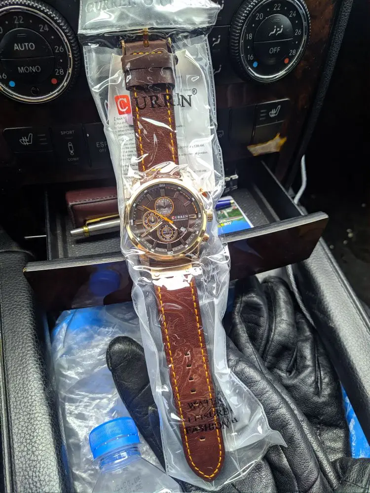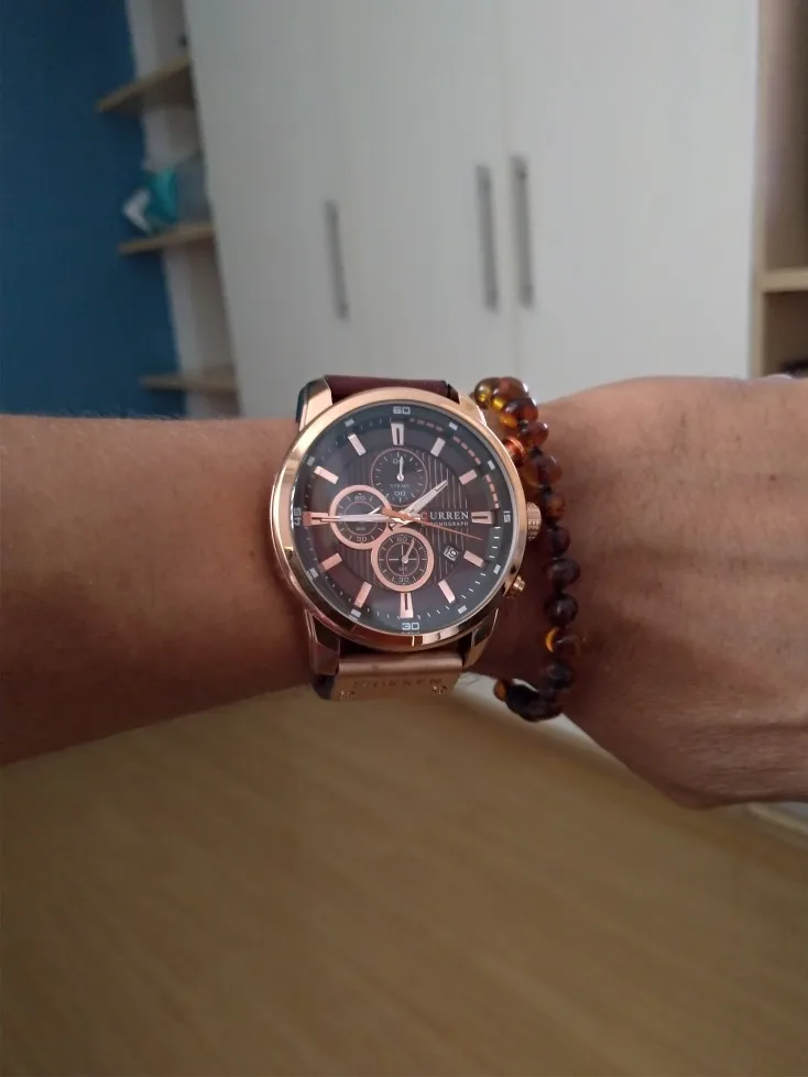 A nice looking watch, rather dressy. The rose gold is close to light copper. Came very quickly, around the 2 week mark. Thee is a little play in the bottom strap about 2-4 mm of wiggle from side to side (I am personally not too bothered by this). The second hand stops on its marks until the 30 marker, then does not hit any until the 60 marker. However has kept accurate time for an hour so far. The stopwatch and split function properly. The glass is ever so slightly raised. All in all a nice watch that could fool for a more expensive time piece.