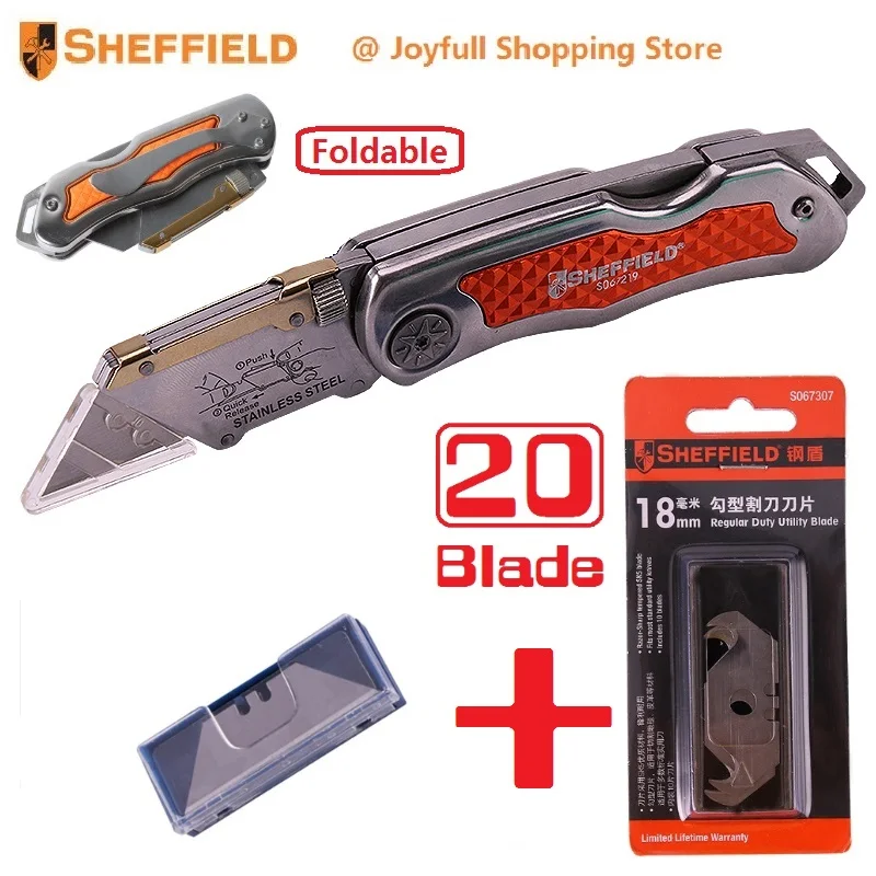 Складной нож Шеффилда, универсальный нож с бесплатным подарком, оригинальный нож с крюком, лезвия, стальной нож с тяжелым лезвием, инструмент для резки бумаги