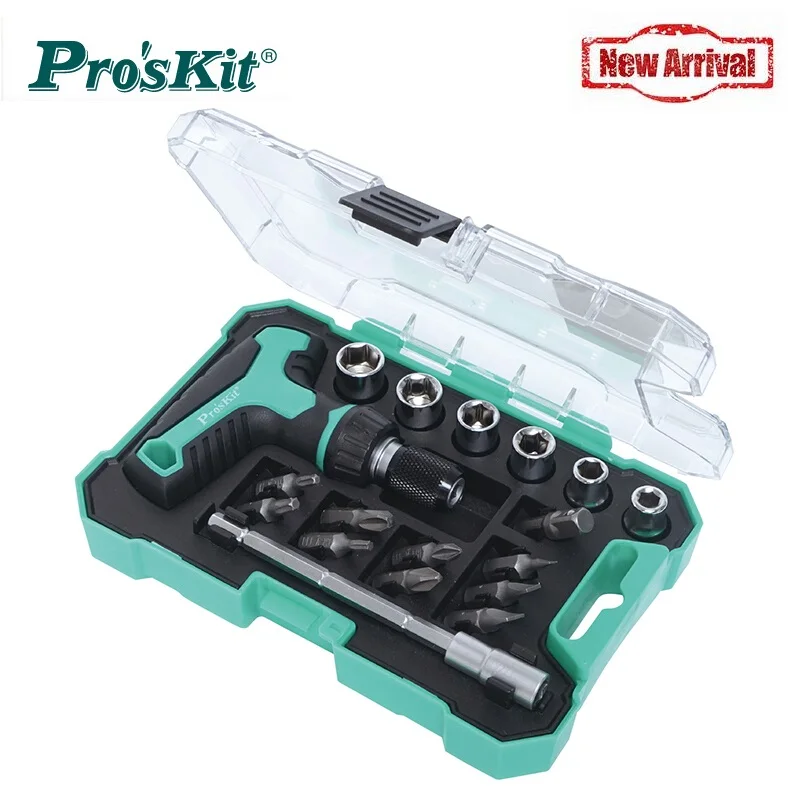 Набор инструментов Proskit 18 в 1, мини-набор T-handle с трещоткой, мини-отвёртка с трещоткой насадки, ручной набор ручных инструментов с удлинителем