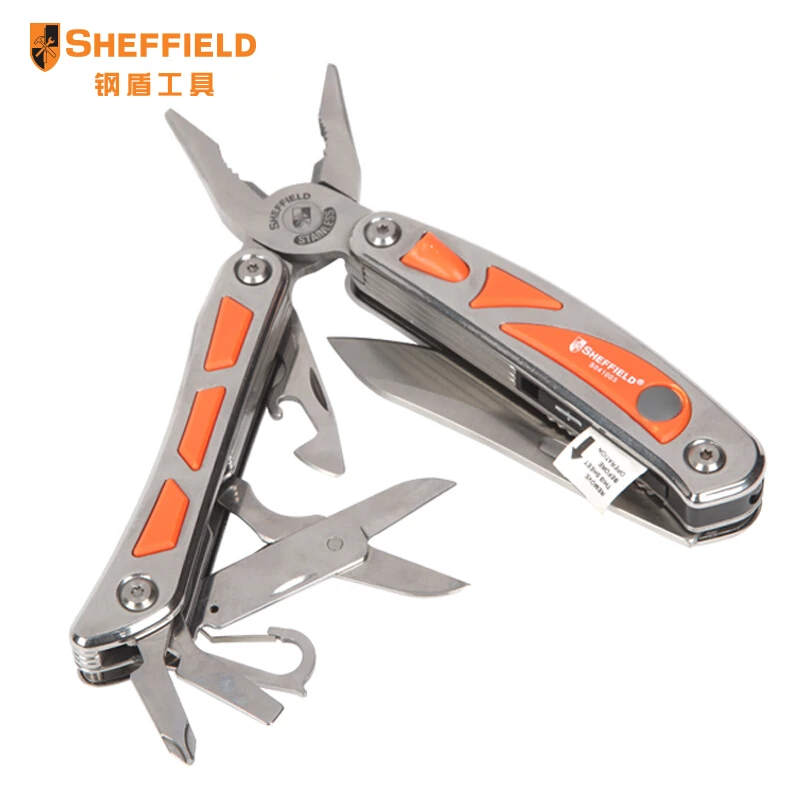 Многофункциональные плоскогубцы Шеффилд S041003 12 в 1, складные плоскогубцы с длинным носом, кусачки для проводов устройство для снятия изоляции с провода открывалка Отвертка Нож кольцо для ключей