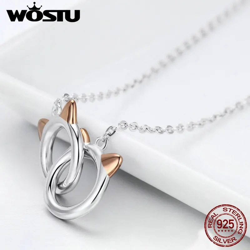 WOSTU ювелирное изделие из серебра 925 пробы, соединительное звено Подвеска для кошек и домашних животных, ожерелье для женщин, 2019, новый бренд, подарок CQN252