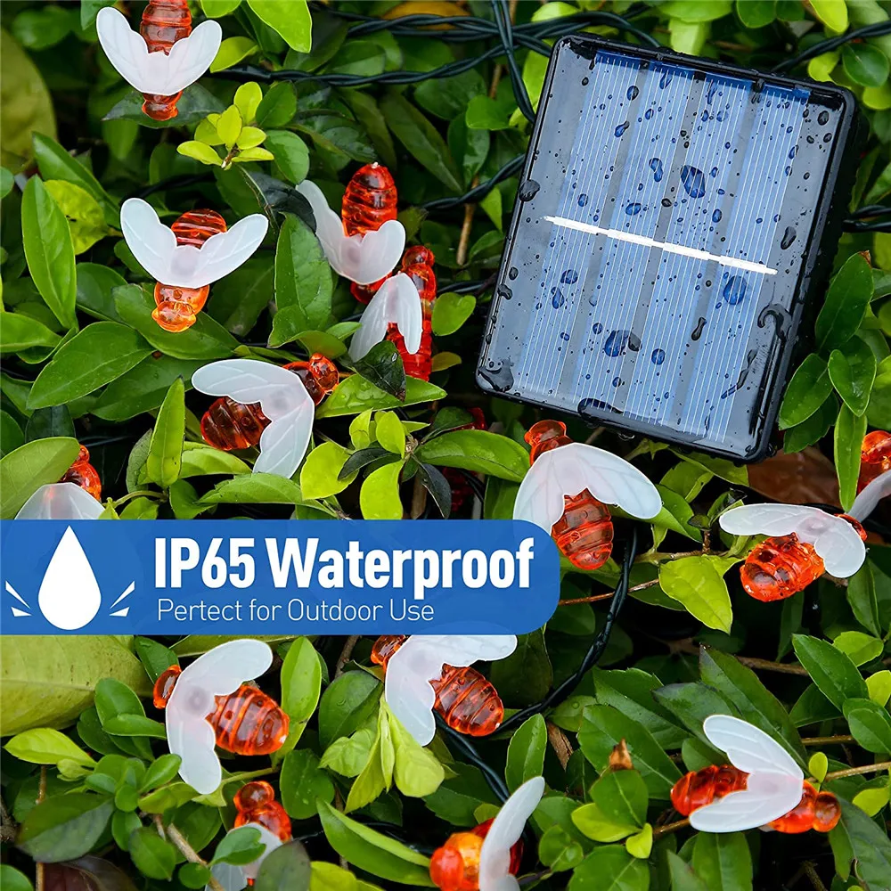 Гирлянда с пчелами на солнечной батарее, 8 режимов освещения, водон...