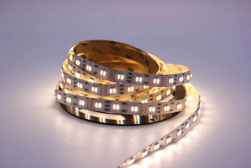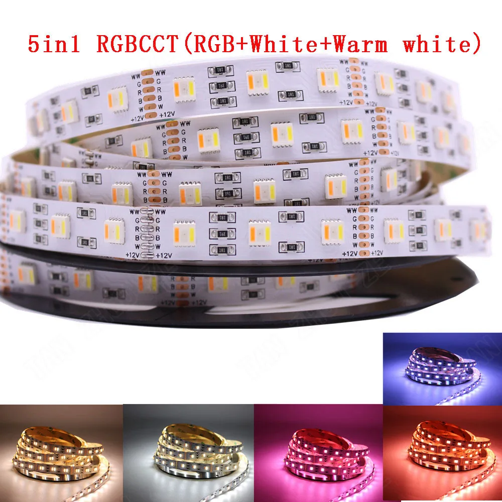 Новое поступление 12345 м RGB + CCT Светодиодная лента 5050 60 светодиодовметр 12 В24 Вольт 5 в 1 чипы LED CW + RGB + WW гибкая лента Белая печатная плата