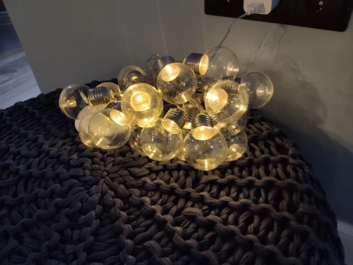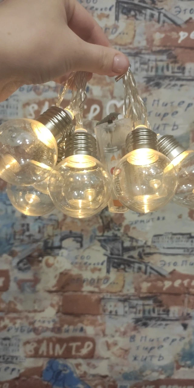 Гирлянда работает замечательно, доставили достаточно быстро. Брала на 20 лампочек, USB подключение. Пришла без каких-либо дефектов. Упаковка в дороге повреждена не была. Приятный тёплый свет, не сильно слепит, но и не тусклый. Очень атмосферная. Советую заранее задуматься о том, на какие крепления вы будете ее размещать, а также об обеспечении соответствующего разъема, если берёте как и я USB. В общем, рекомендую для покупки.
