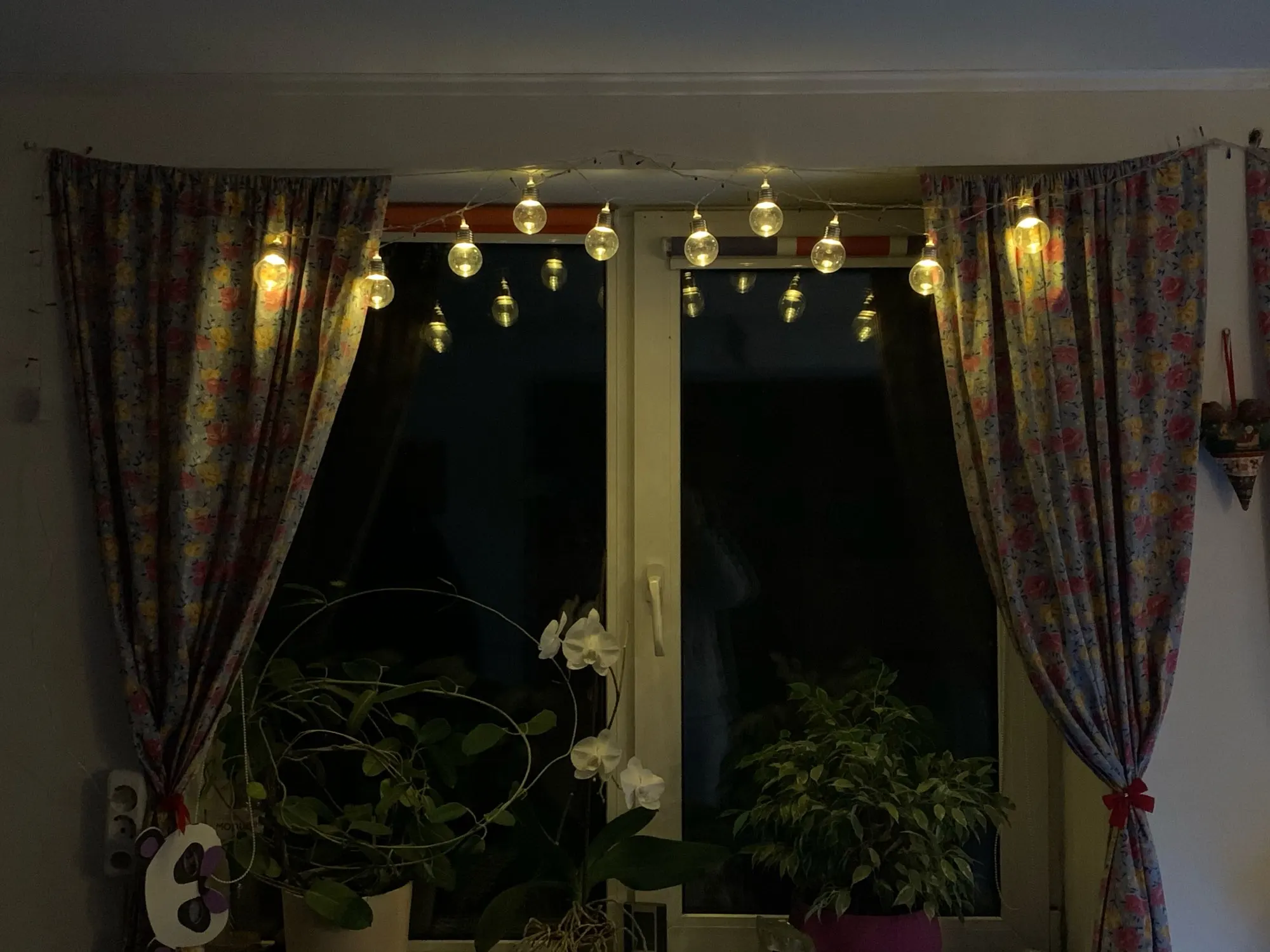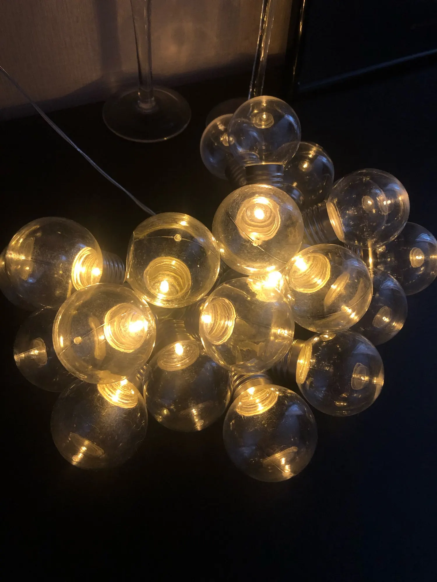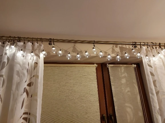 Надеялся что шарики стеклянные,а они пластиковые. И думал что будет не обычная герлянда. Но а так,красиво)